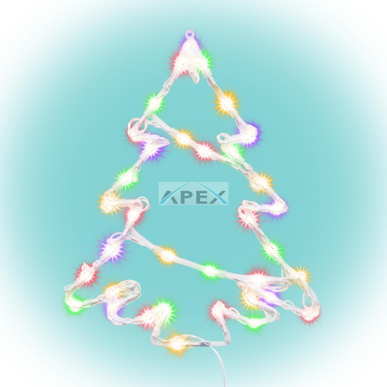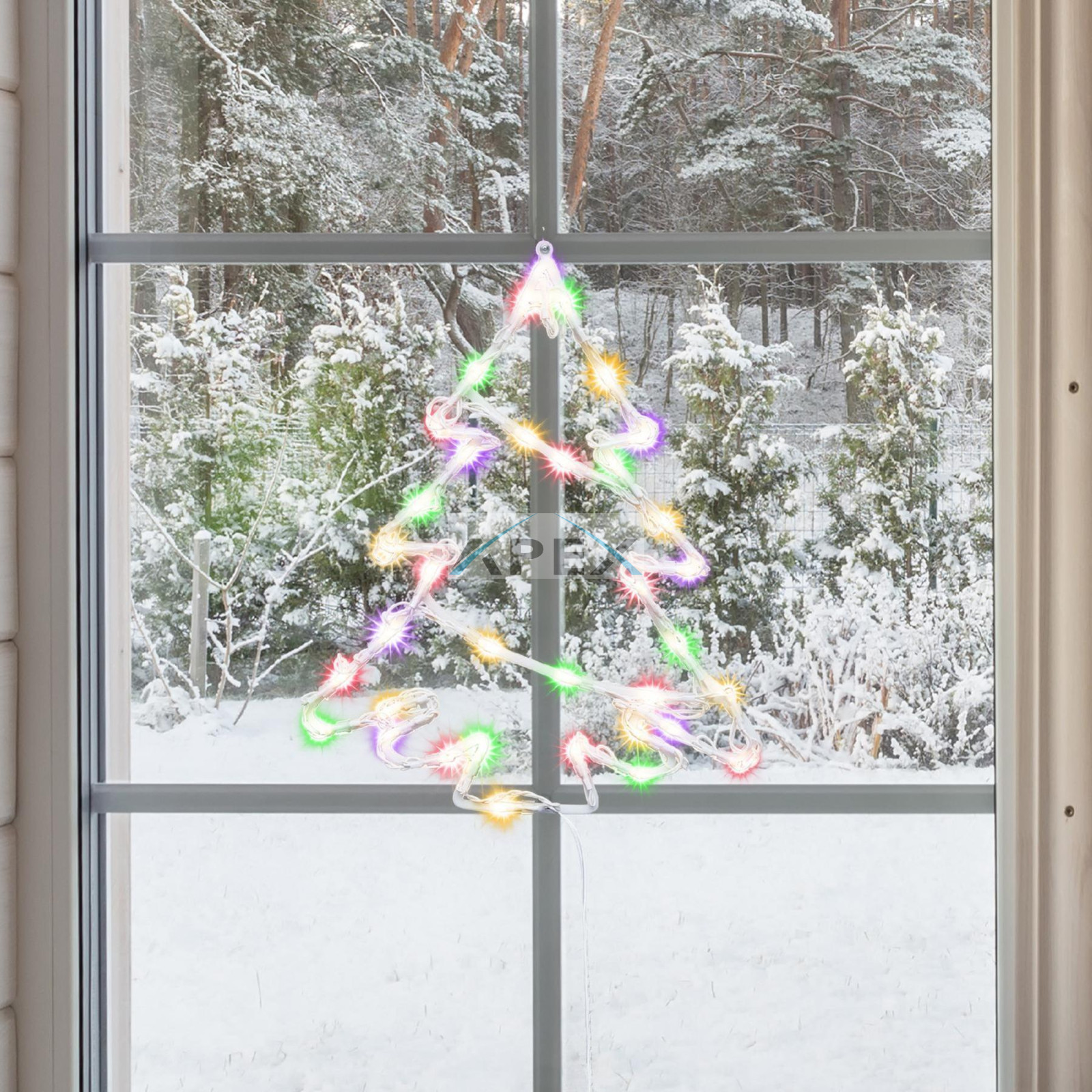 Home KID502M fenyőfa ablakdísz, kül- és beltéri kivitel, 35 db színes LED, 2 tapadókorong, fehér tápkábel, 33 x 28 cm