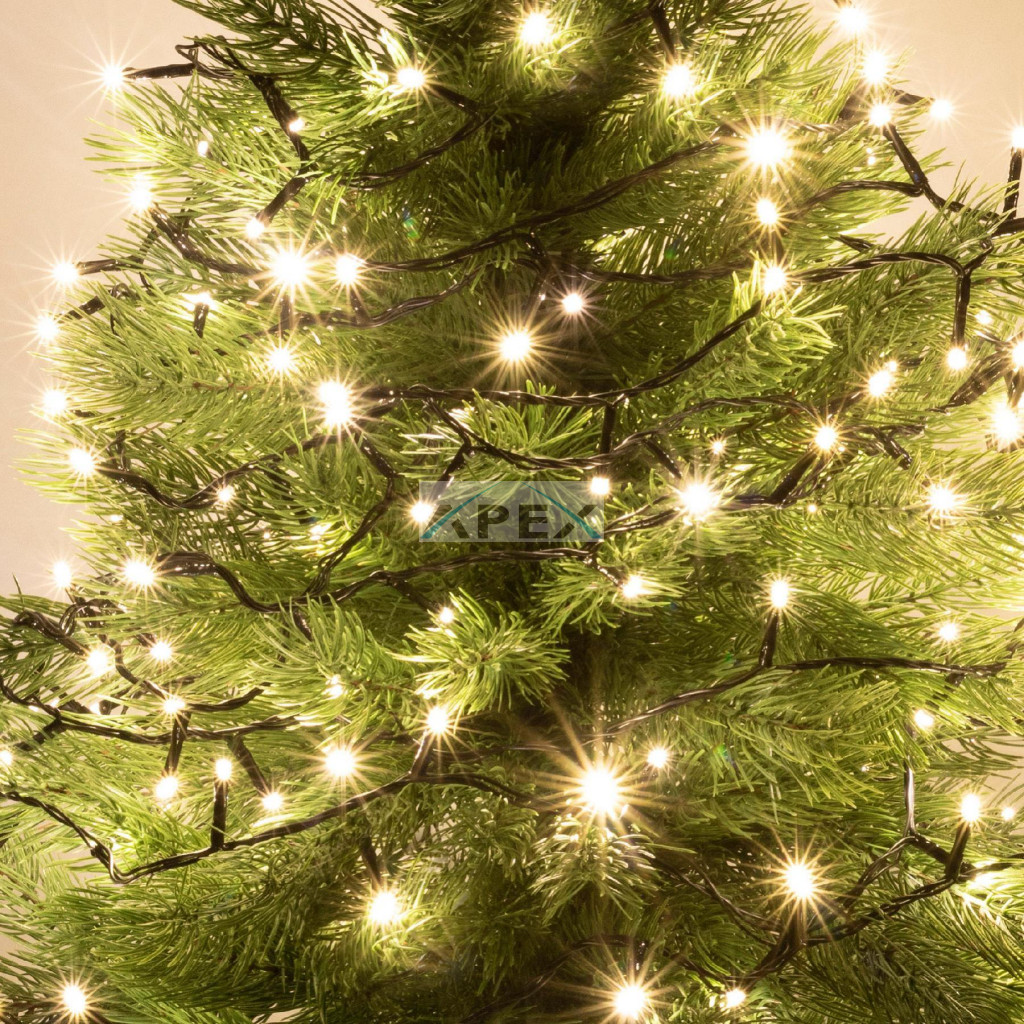 A zöld vezeték jól illeszkedik a karácsonyfa környezetébe, így egy diszkrét és modern vizuális élményt nyújt.