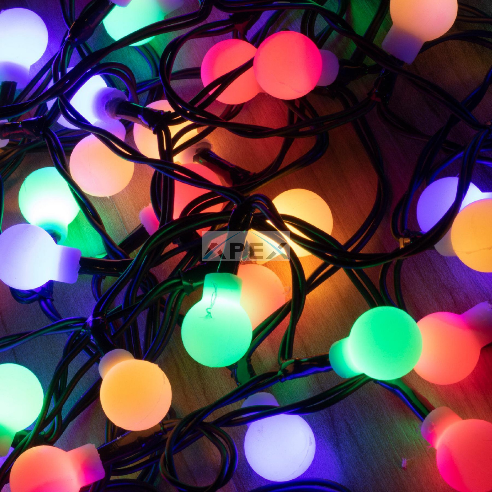 Home KII 100B/M LED-es gömb fényfüzér, 8 m / 100 db színes LED, állófényű, zöld vezeték, hálózati adapter, beltéri kivitel