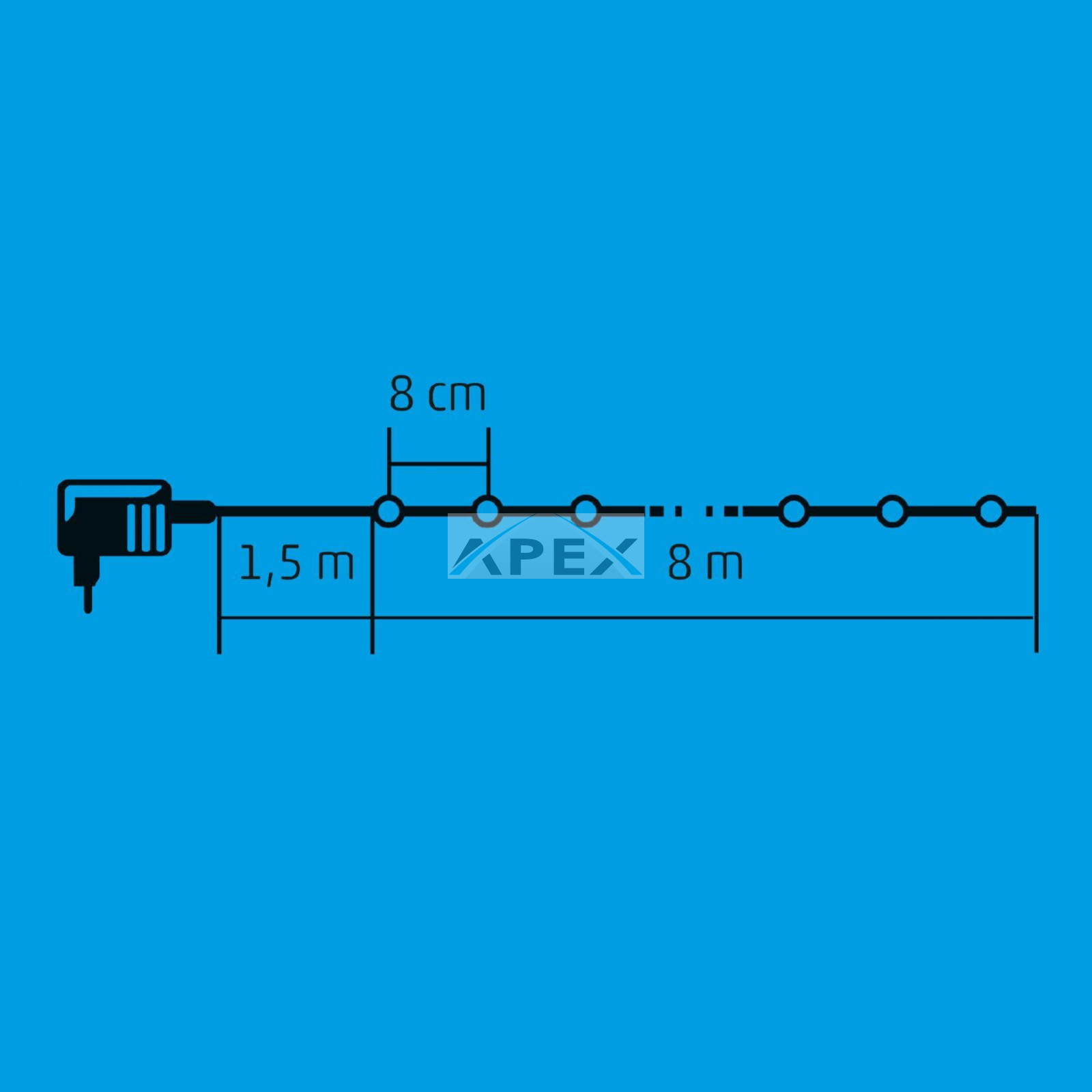A KII 100B/M pontosan ilyen: egy beltéri kivitelű, állófényű fényfüzér, melyben 100 színes LED gyönyörködteti szemét.