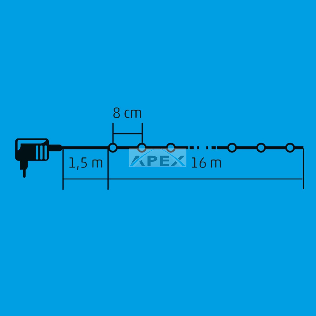 Home KII 200/M LED-es fényfüzér, 16 m / 200 db színes LED, állófényű, zöld vezeték, hálózati adapter, beltéri kivitel
