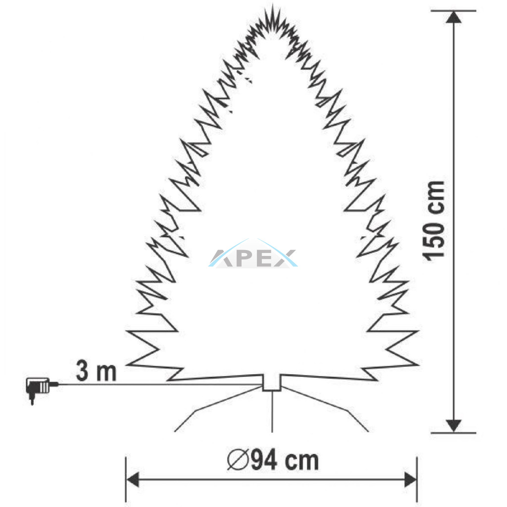 Home KMF 6/150 műfenyő beépített világítással, 250 db LED, 150 cm magasság, 94 cm átmérő, talpkapcsoló, 4 funkció