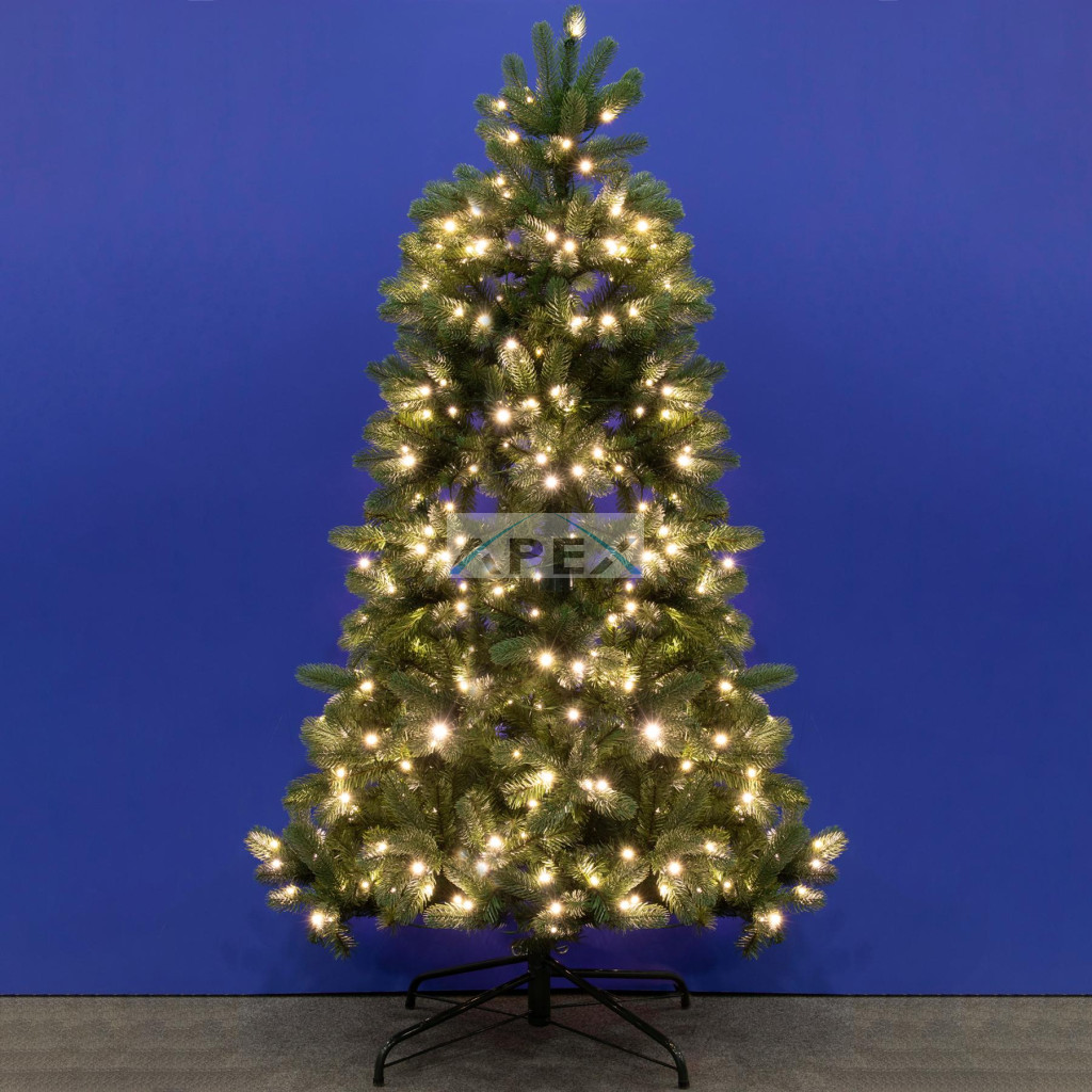 A műfenyő ágai 3D és 2D vegyes tűlevelekből készültek, amelyek élethű megjelenést biztosítanak, így könnyen összetéveszthető egy valódi fenyővel. A 1712 csúcsos ágak dús és rendezett elrendezést biztosítanak, ami tökéletes alapot nyújt a karácsonyi díszeknek és fényfüzéreknek, hogy valóban egyedi ünnepi hangulatot varázsoljon otthonába. Az ágak zsanéros csatlakozása garantálja az egyszerű és gyors összeszerelést: mindössze a törzset kell összeilleszteni, és a LED-ek áramkörei automatikusan záródnak, így nincs szükség bonyolult vezetékezésre.