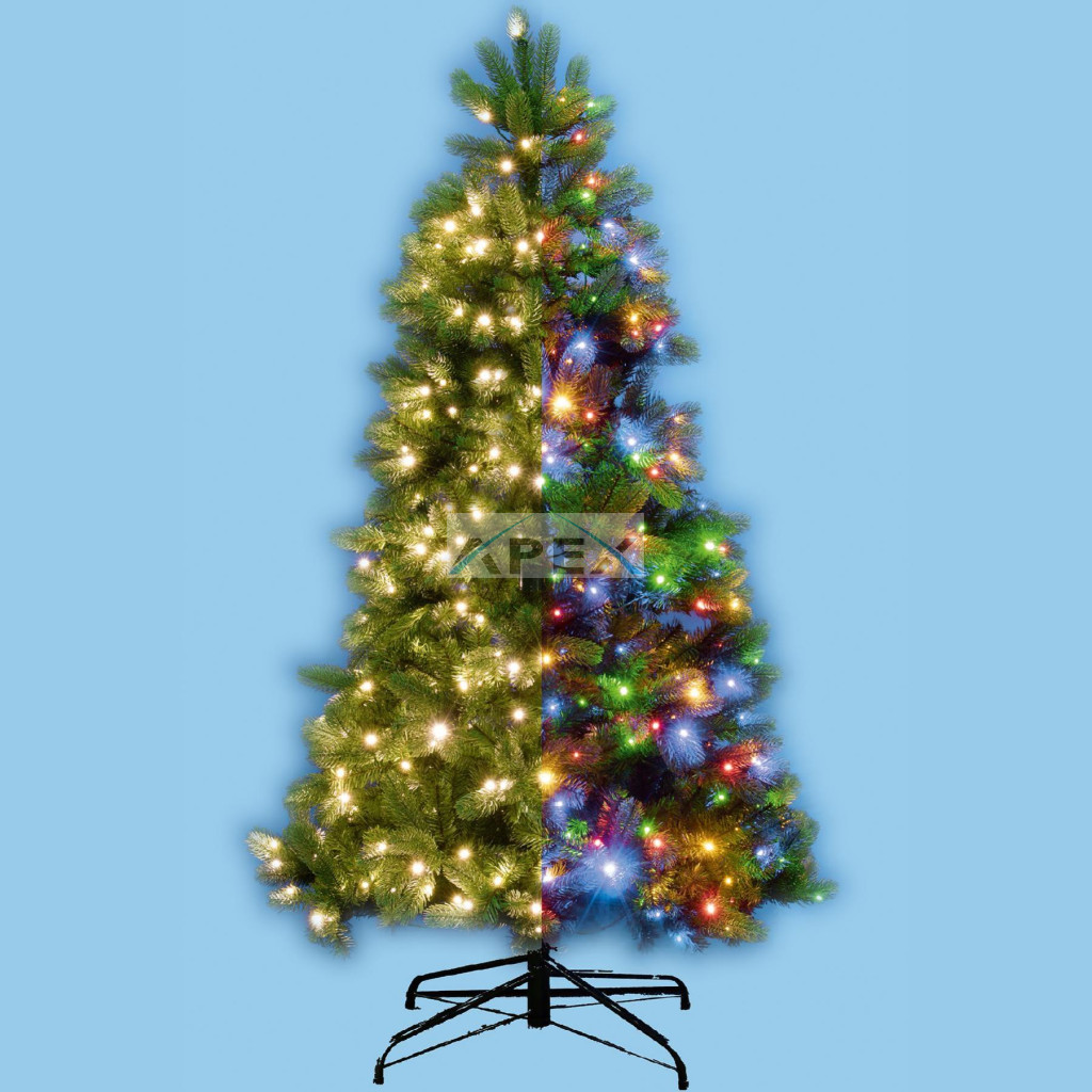 Ez a 240 cm magas, prémium minőségű műfenyő 650 db speciális, kétszínű LED-del van felszerelve, amelyek garantálják az ünnepi ragyogást, mind melegfehér, mind pedig színes fényben. A különleges talpkapcsoló segítségével négyféle funkció közül választhat: választhatja a melegfehér állófényű megvilágítást, a színes állófényű változatot, a felváltva melegfehér és színes fényt, vagy akár teljesen ki is kapcsolhatja a világítást. Ez a sokoldalúság lehetővé teszi, hogy a fa minden alkalomhoz és hangulathoz alkalmazkodjon.