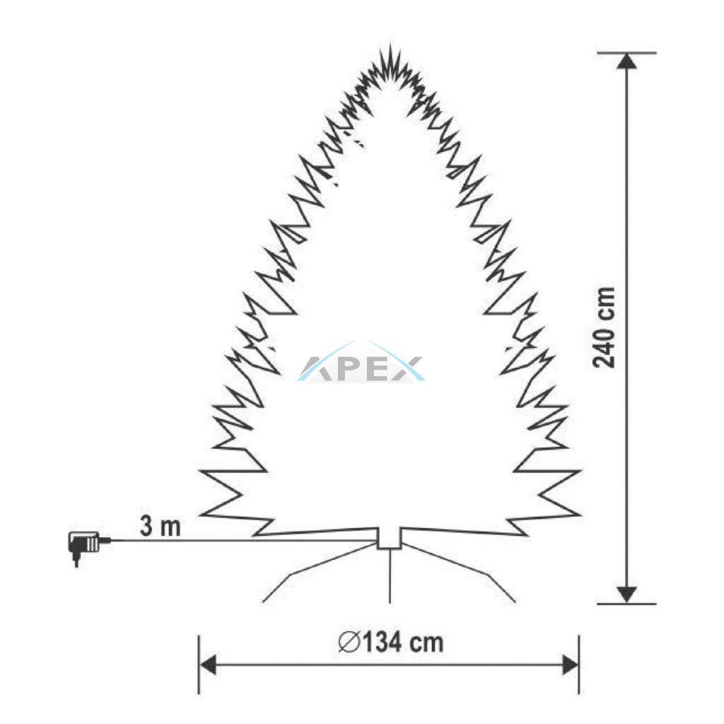 A fa stabilitásáról a masszív fém talp gondoskodik, amely biztosítja, hogy a fa szilárdan álljon, még akkor is, ha gazdagon fel van díszítve. A műfenyő magassága 240 cm, legnagyobb átmérője pedig 134 cm, így kompakt, mégis impozáns megjelenést kölcsönöz minden helyiségben. Az egyszerűen szétszedhető kialakítás lehetővé teszi a könnyű tárolást, így a fa gyorsan és kényelmesen elpakolható az ünnepek után.