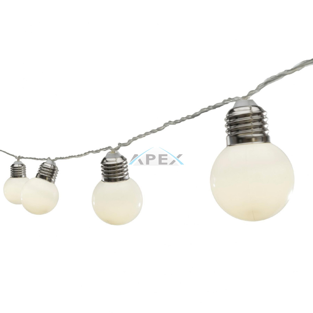 Home LP 20/WW LED-es villanykörte fényfüzér, 9,5 m / 20 db melegfehér LED, villanykörte búra, állófényű, átlátszó vezeték, adapter, kül- és beltéri kivitel
