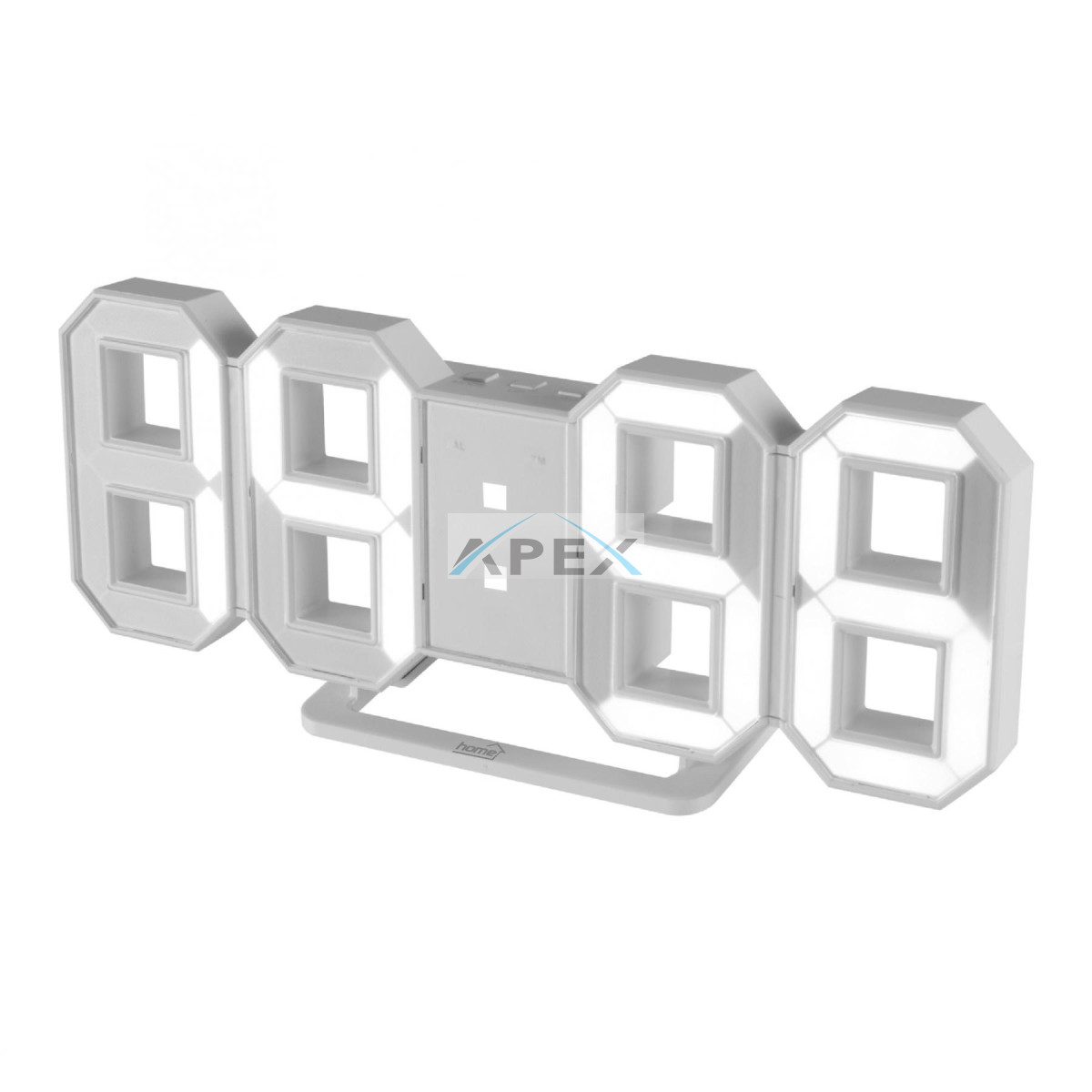 Home LTC 04 digitális, 3D LED ébresztőóra, 80 mm magas fehér kijelző, kitűnően leolvasható, háromféle fényerősség