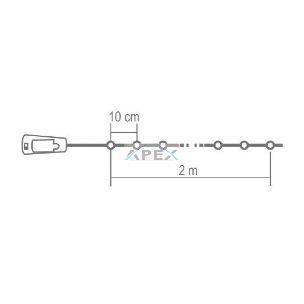Ez a 2 méter hosszú fényfüzér 20 darab apró, pontszerű micro LED-del van ellátva, amelyek ragyogó színes fényt bocsátanak ki, miközben a vékony, átlátszó vezeték szinte észrevétlenül olvad a környezetbe, így a fényhatás kerül a középpontba. A fényfüzér állófényű, tehát folyamatos, nyugodt fényt biztosít, amely kiválóan alkalmas kisebb helyek dekorálására, mint például polcok, tükrök vagy asztali díszek. A be/ki kapcsolóval könnyen kezelhető, így egyszerűen vezérelhető, amikor szükséges. A termék 2 db 1,5 V-os (LR44) gombelemmel működik, amelyek tartozékok, így a telepítés után azonnal használatba vehető.