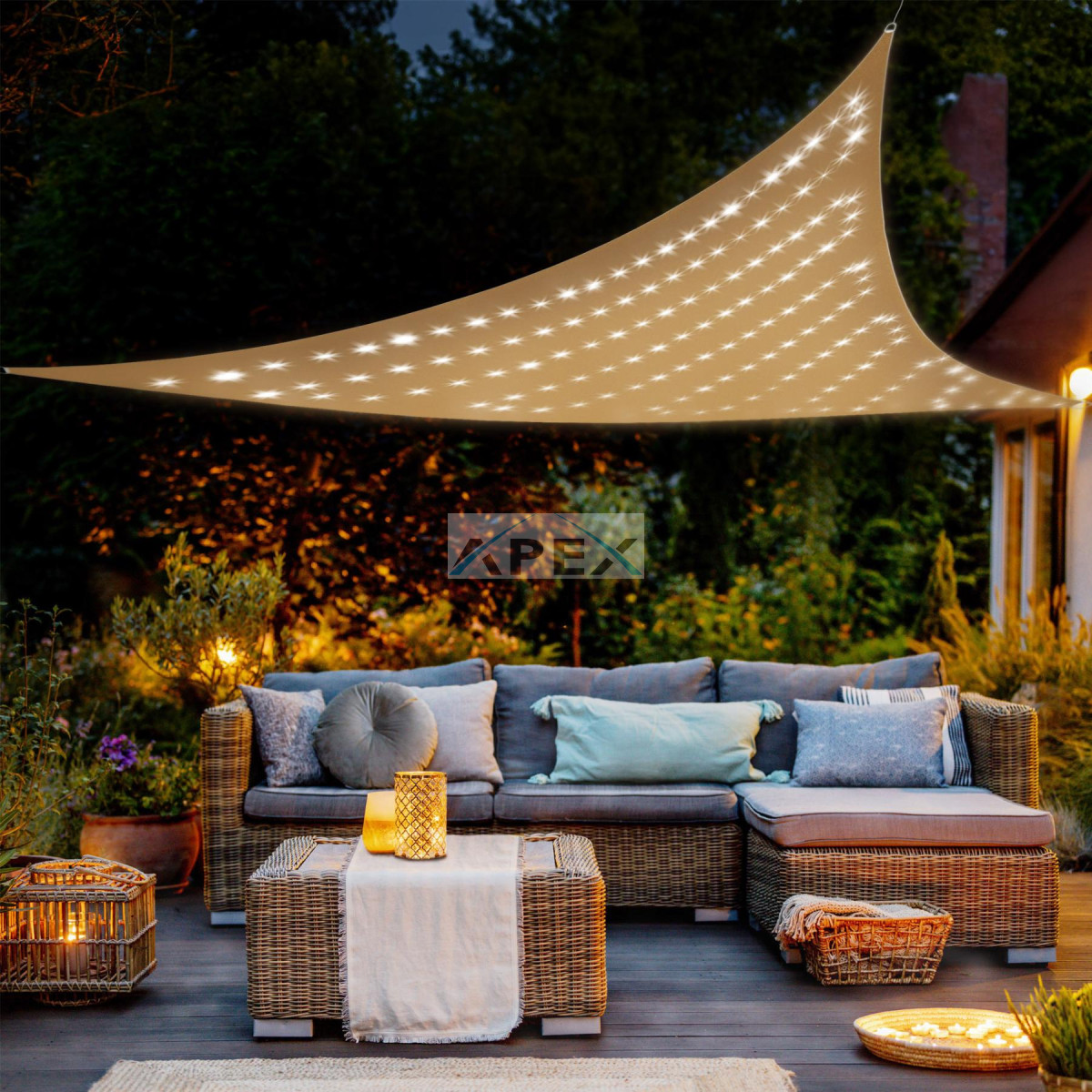 Ez a sokoldalú napvitorla kül- és beltéri használatra is alkalmas, így tökéletes választás a kertben, teraszon vagy akár a fedett területeken. A 140 db melegfehér LED biztosítja a hangulatos világítást, amely 8 különböző programon keresztül szabályozható, így minden alkalomhoz illő atmoszférát teremthet. Az IP44 besorolás azt jelenti, hogy a vitorla fröccsenő víz ellen védett minden irányból, így az enyhébb időjárási körülmények sem jelentenek számára problémát.