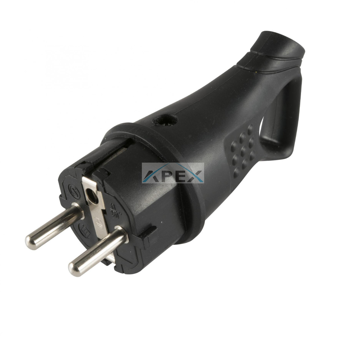 Az NGD 02 Földelt dugvilla 45°-os kábelvezetésű. Maximum 3680 W-ig terhelhető. A fekete színű dugvilla gumírozott anyagú, akasztóval ellátott, kül- és beltéren egyaránt használható.