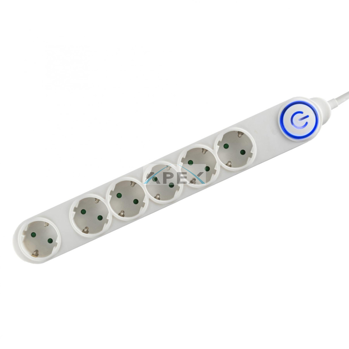 Home NV 06TK/WH talpkapcsolós elosztó világító kapcsolóval, 1,5 m, H05VV-F 3G1,0 mm2 kábel, 6 aljzat gyermekvédelemmel, max. 3500W, fehér
