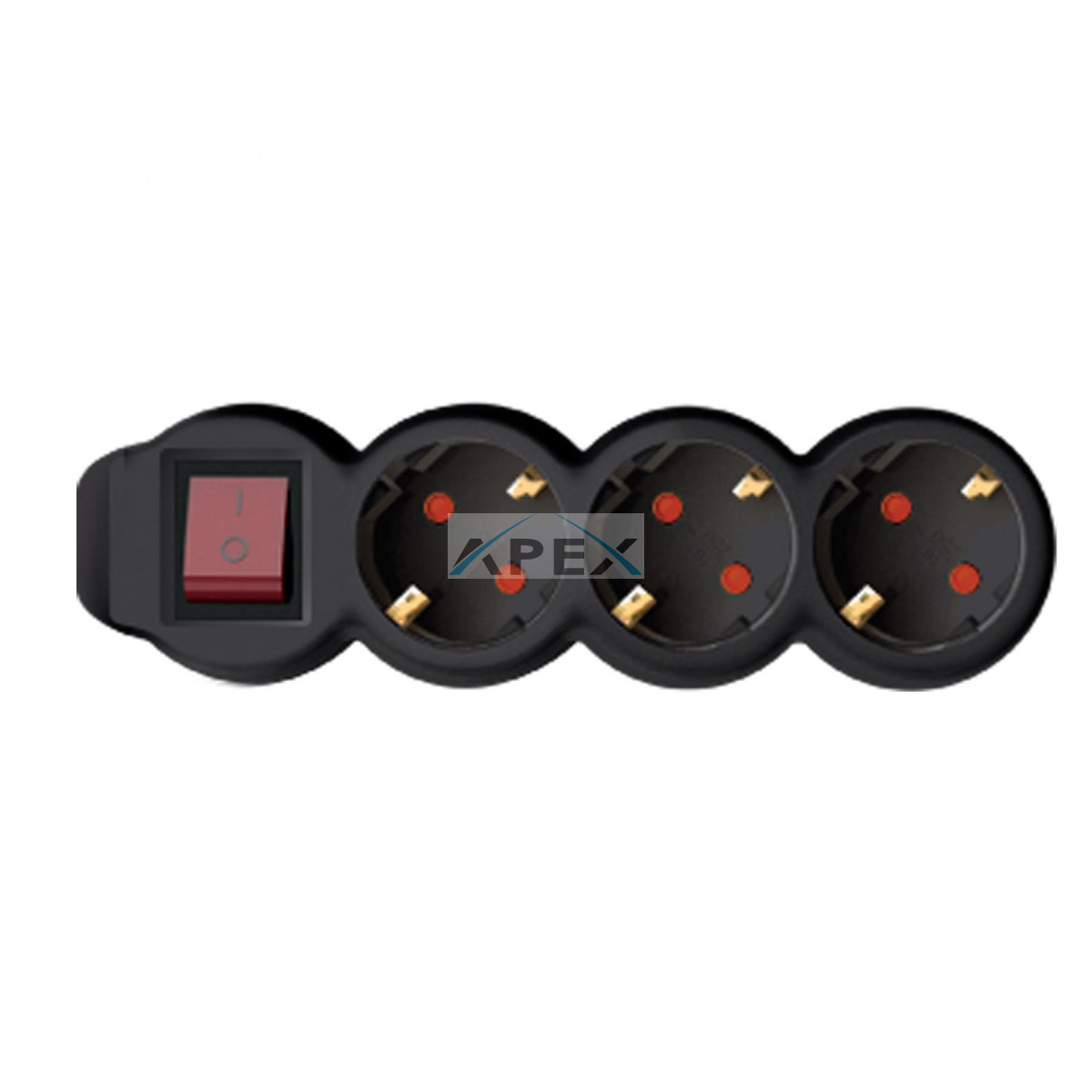 Az NV 3K-3/BK/1,5 Kapcsolós hálózati elosztó 3 db aljzattal ellátott, melyet egy fő kapcsolóval áramtalanítani tud. A biztonságos használat érdekében IP 20 védelemmel és gyermekvédelemmel ellátott. A fekete színű elosztó 3 m hosszú H05VV-F 3G1,5 mm2 kábellel felszerelt. Maximum 3500 W-ig terhelhető.