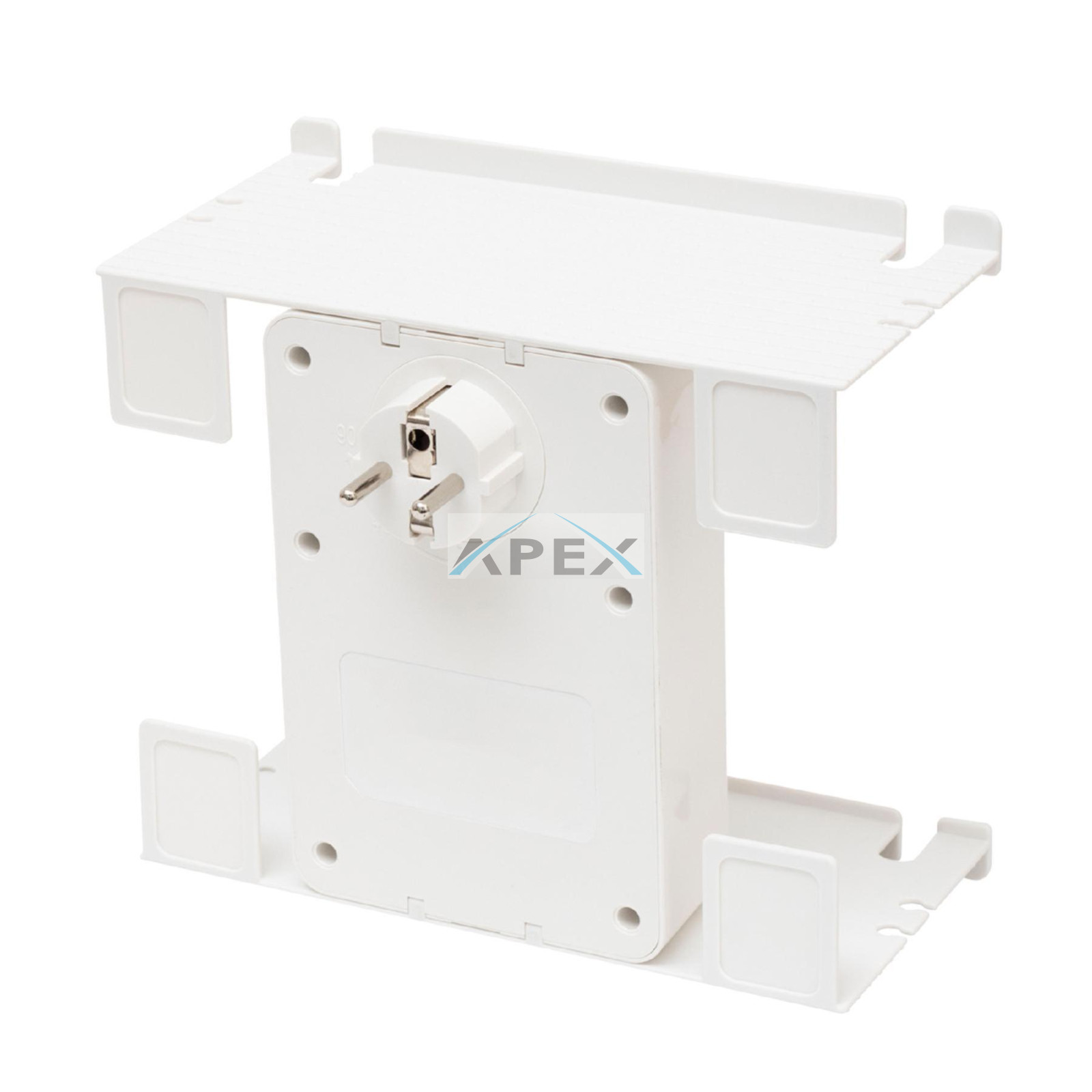 a fali aljzathoz csatlakoztatott elosztóhoz alulra és felülre tárolótálcák rögzíthetők • 90°-kal elfordítható csatlakozódugó - így minden fali aljzathoz csatlakoztatható