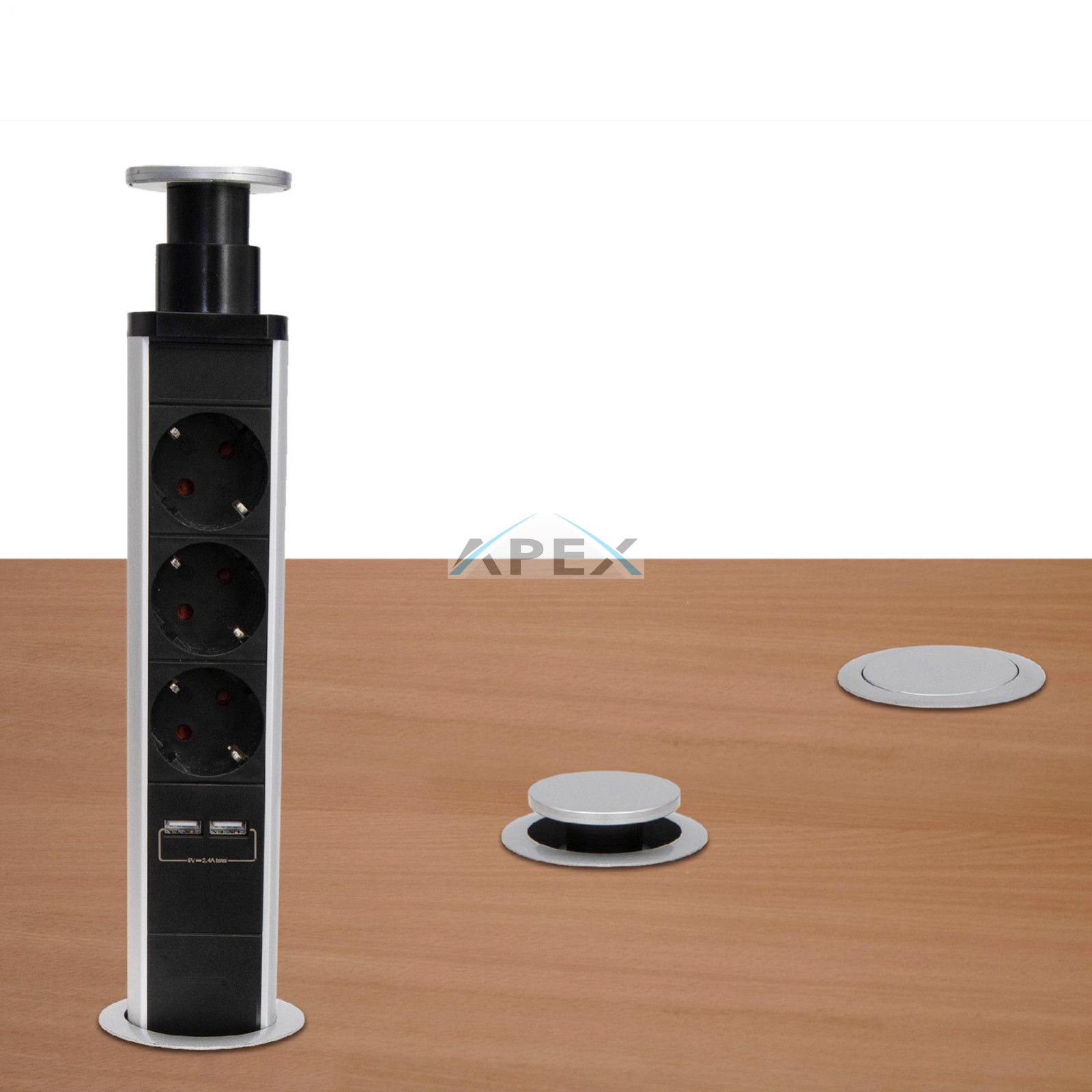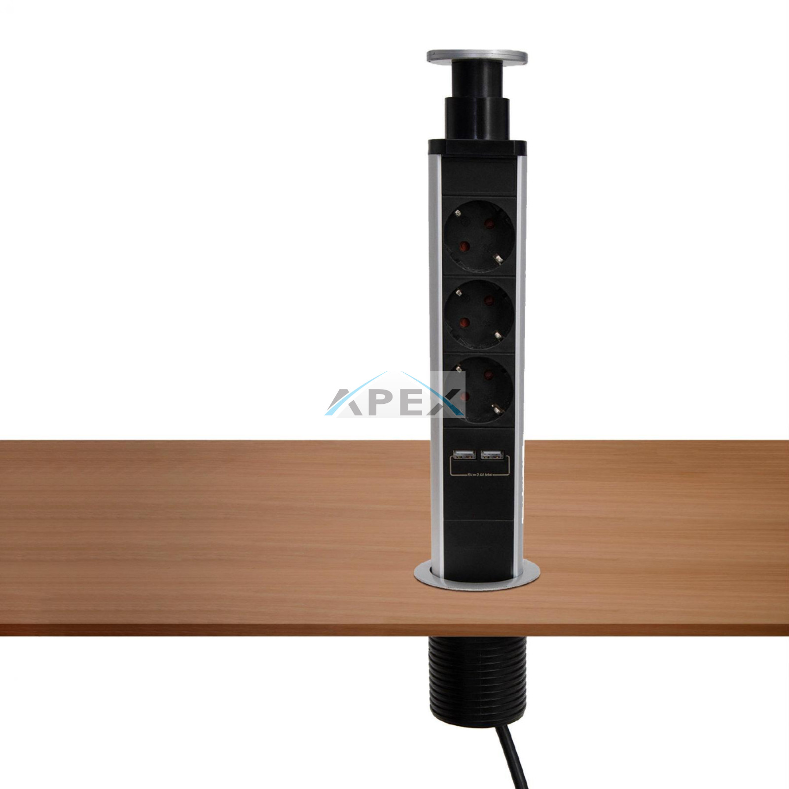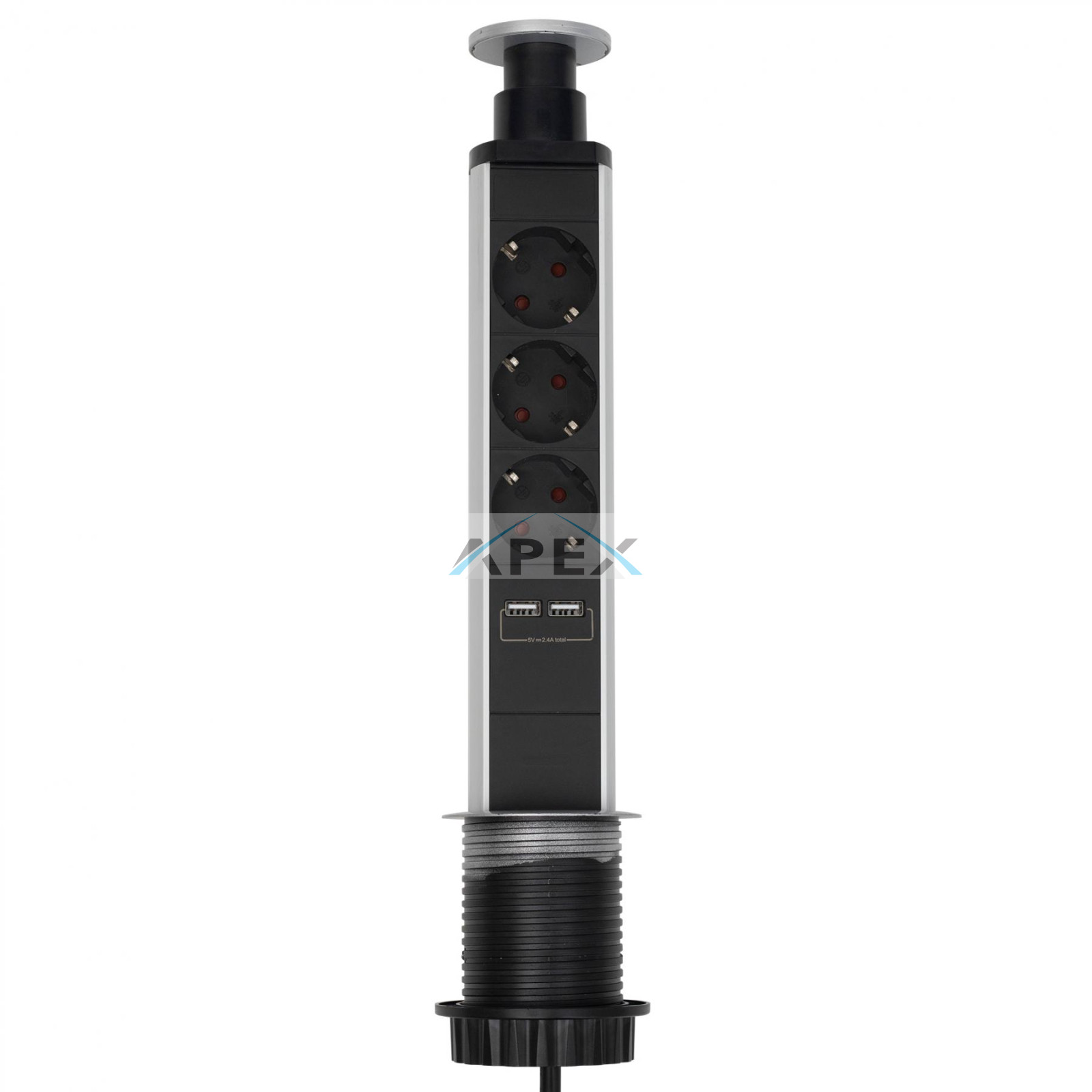 Home NVE 3/USB süllyesztett elosztó USB töltőaljzatokkal, 1,4 m, 3 földelt aljzat gyermekvédelemmel, asztalba, munkalapba építhető, süllyeszthető, max. 3680 W