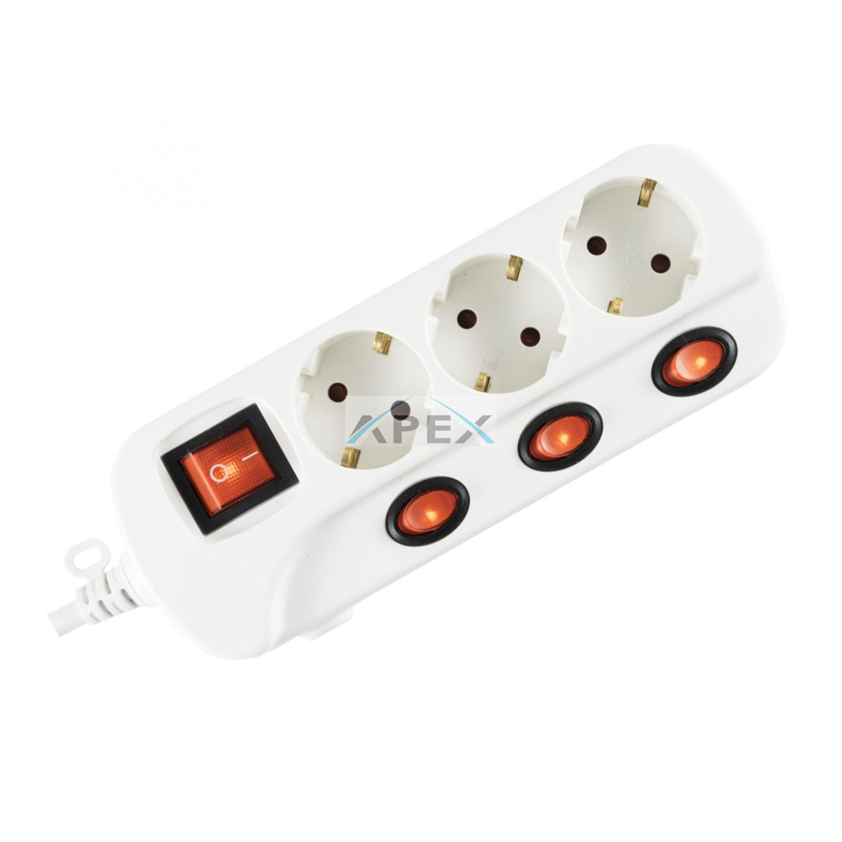 Home NVK 03K/WH hálózati elosztó, 1,5 m, H05VV-F, 3G1,0 mm2 kábel, kapcsolós, 3 aljzat gyermekvédelemmel, max. 3500W, fehér