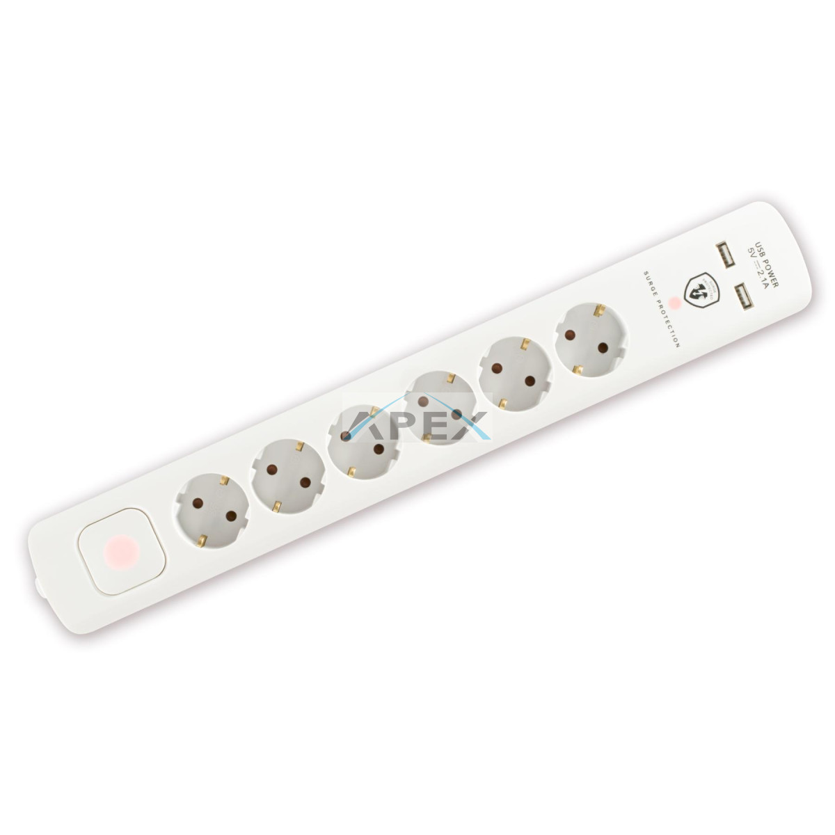 Home NVT 06K USB/WH túlfeszültség védett hálózati elosztó, 1,4 m, kapcsolós, H05VV-F 3G1,5 mm2 kábel, 6 aljzat, max. 3680W, falra akasztható, USB töltőaljzatok