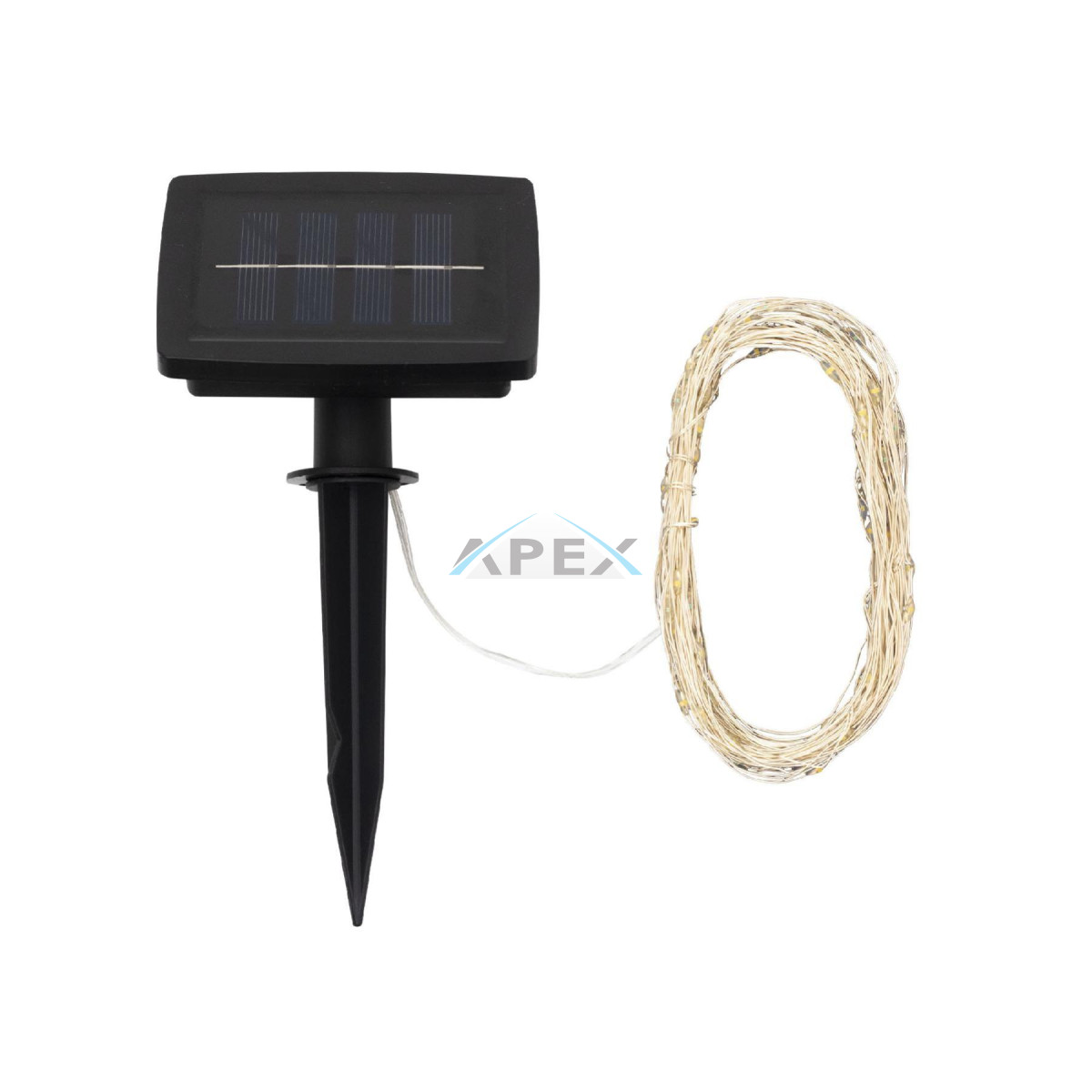 Az átlátszó vezeték diszkrét megjelenést biztosít, így a LED-ek ragyogása kerül a középpontba. A fényfüzér 5 méter hosszú, melyet további 1 méter tápkábel követ a szolár panelig, biztosítva a megfelelő elhelyezést. Az LED-ek közötti 5 cm-es távolság egyenletes fényeloszlást garantál.