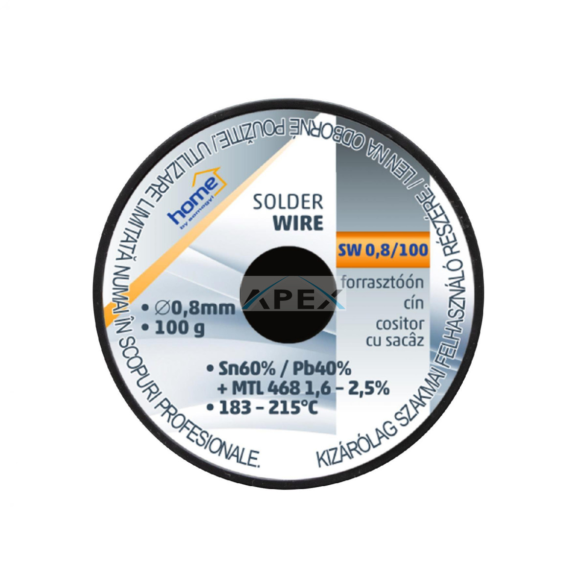 Home SW 0,8/100 forrasztóón, 0,8mm, 100g, európai gyártótól származó kiváló minőségű forrasztóón, összetétel: SN/PB: 60/40%, gyanta: 2,0%