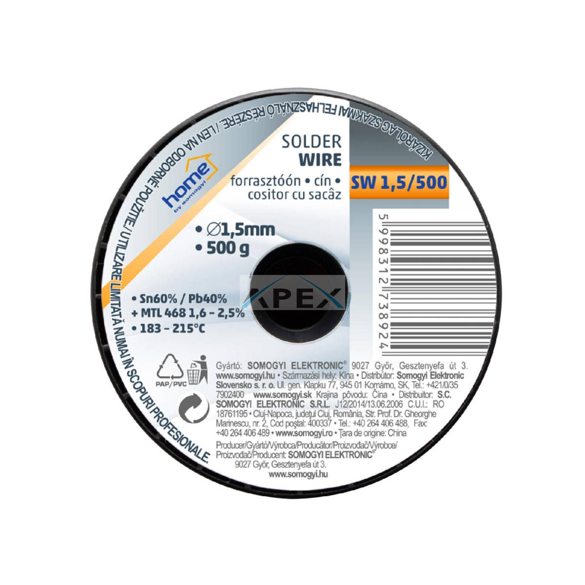 Home SW 1,5/500 forrasztóón, 1,5mm, 500g, európai gyártótól származó kiváló minőségű forrasztóón, összetétel: SN/PB: 60/40%, gyanta: 2,0%