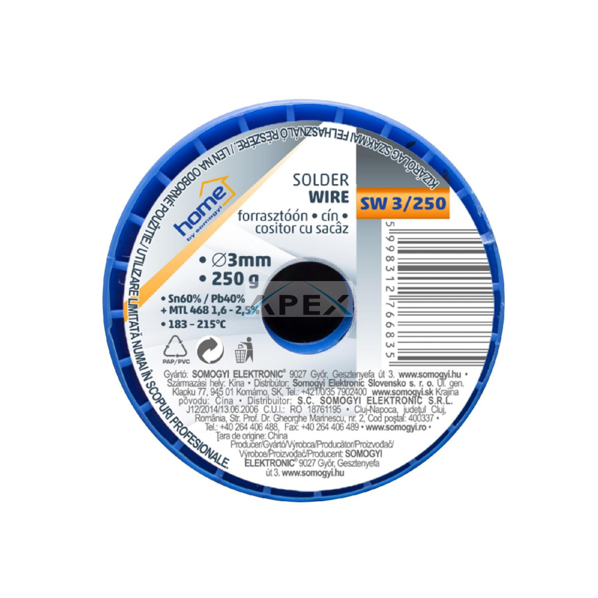 Home SW 3/250 forrasztóón, 3mm, 250g, európai gyártótól származó kiváló minőségű forrasztóón, összetétel: SN/PB: 60/40%, gyanta: 2,0%