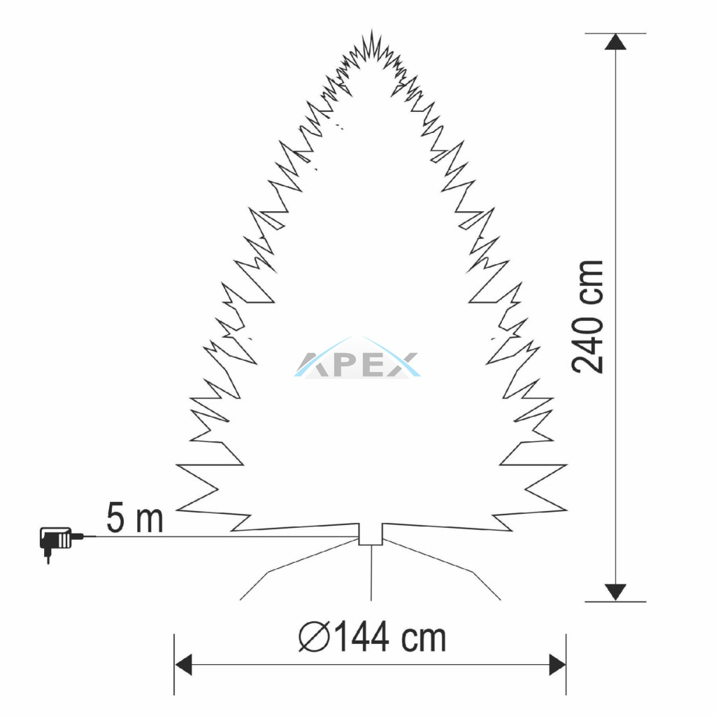HOME KMF8LED240 havas műfenyő LED-ekkel, 460db melegfehér LED, 240cm magas, 144cm átmérő, 3D és 2D tűlevelek, hálózati tápellátás, beltéri kivitel