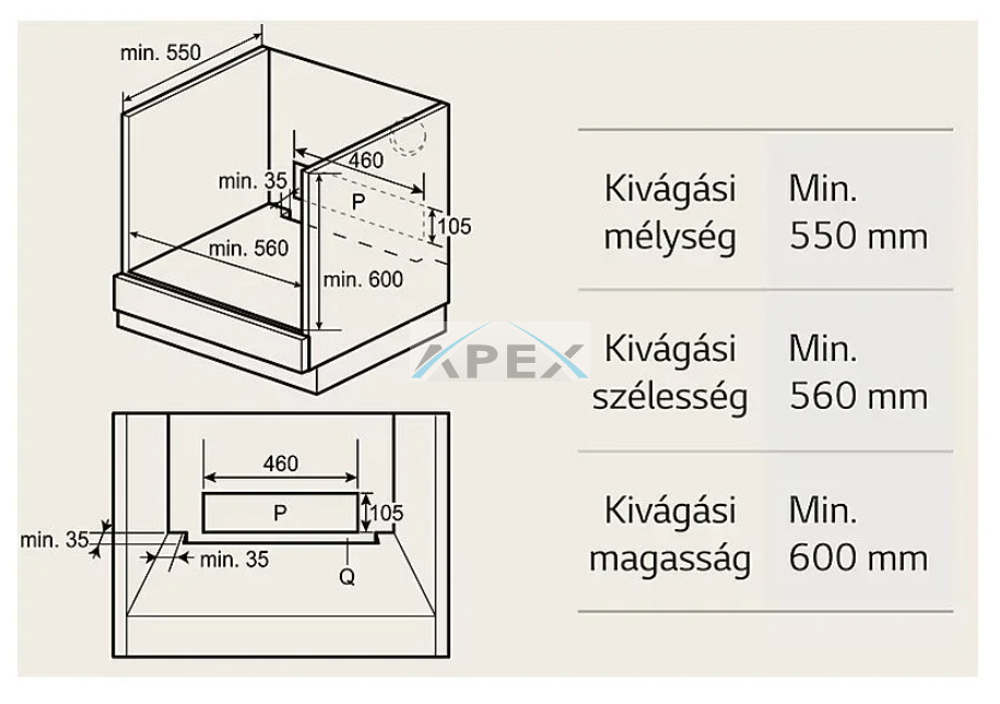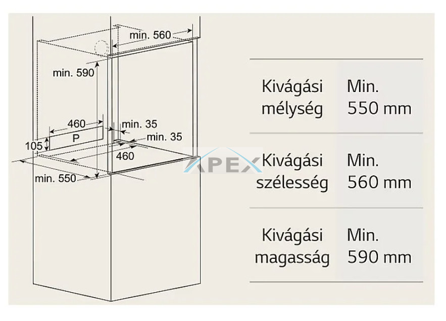Sütő helyének méretei (Szél X Mag X Mély.) (mm)