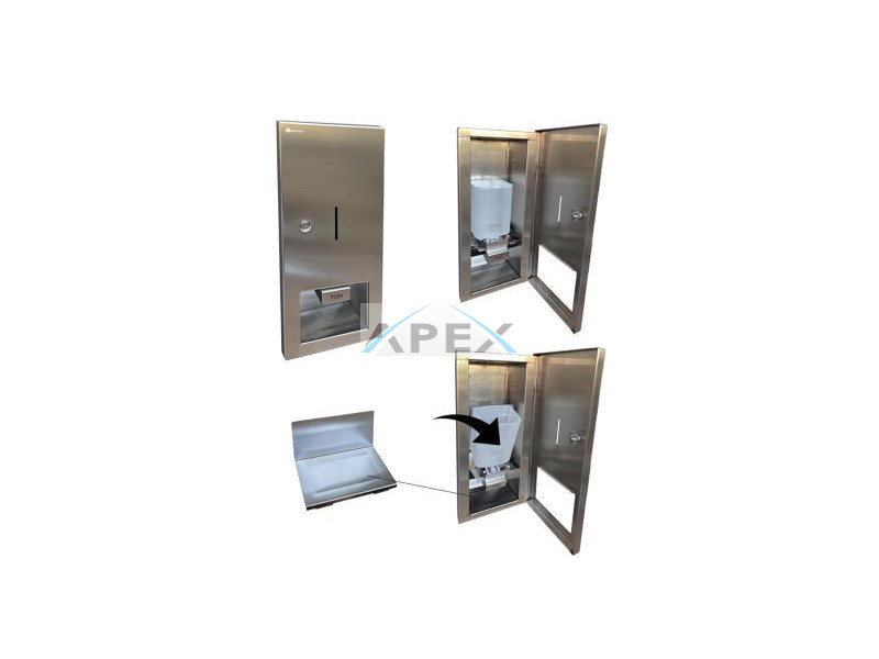 Szappanadagoló, rozsdamentes, szálcsiszolt, utántölthető, 800ml, falbe építhető
