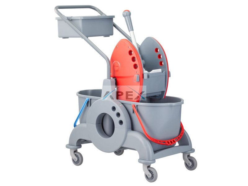Felmosó kocsi, 2 vödrös (2x15L), 8L-es tálcával, piros préssel