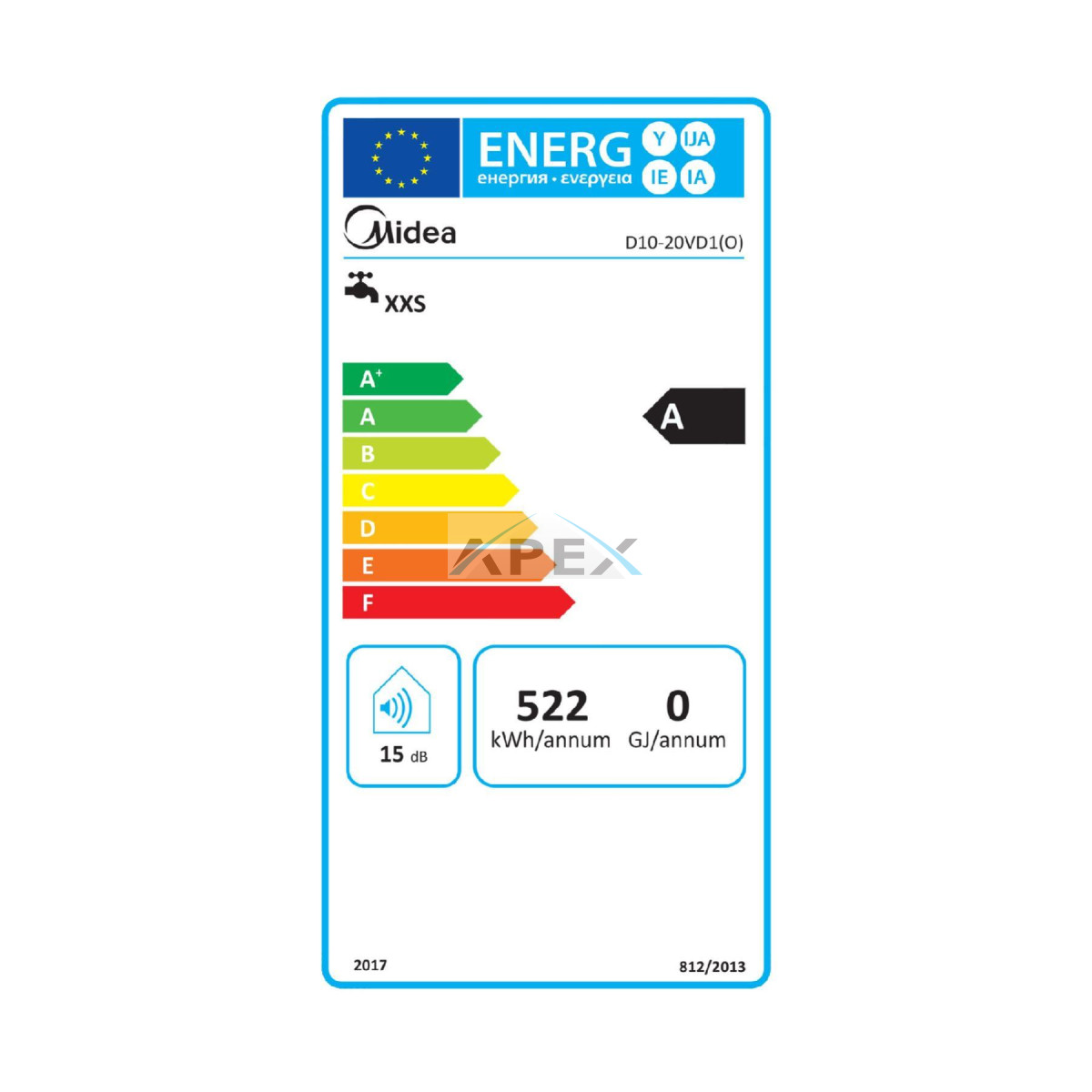 MIDEA D10-20VD1(O) elektromos vízmelegítő, bojler, 2000 W, 10 liter, zománcozott víztartály és fűtőszál, mechanikus vezérlés, konyhapult fölé szerelhető