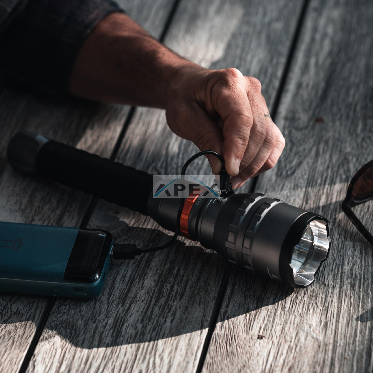 Az eloxált repülőgép-minőségű alumíniumból készült elemlámpa vízálló (IP67) és ütésálló, így az extrém körülmények között is megbízható társ. A csomag tartalmaz egy USB-C töltőkábelt és egy csuklópántot is, így a lámpa mindig kéznél lehet.
