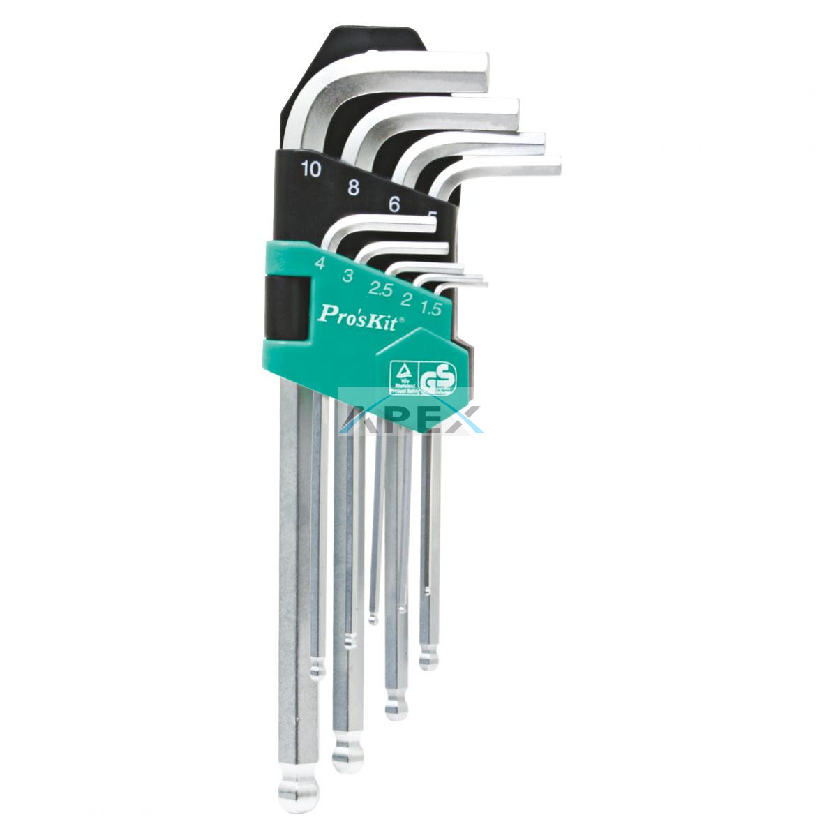 Pro'skit HW-229B imbuszkulcskészlet, gömbfejű fél, króm-vandánium, 9 darabos
