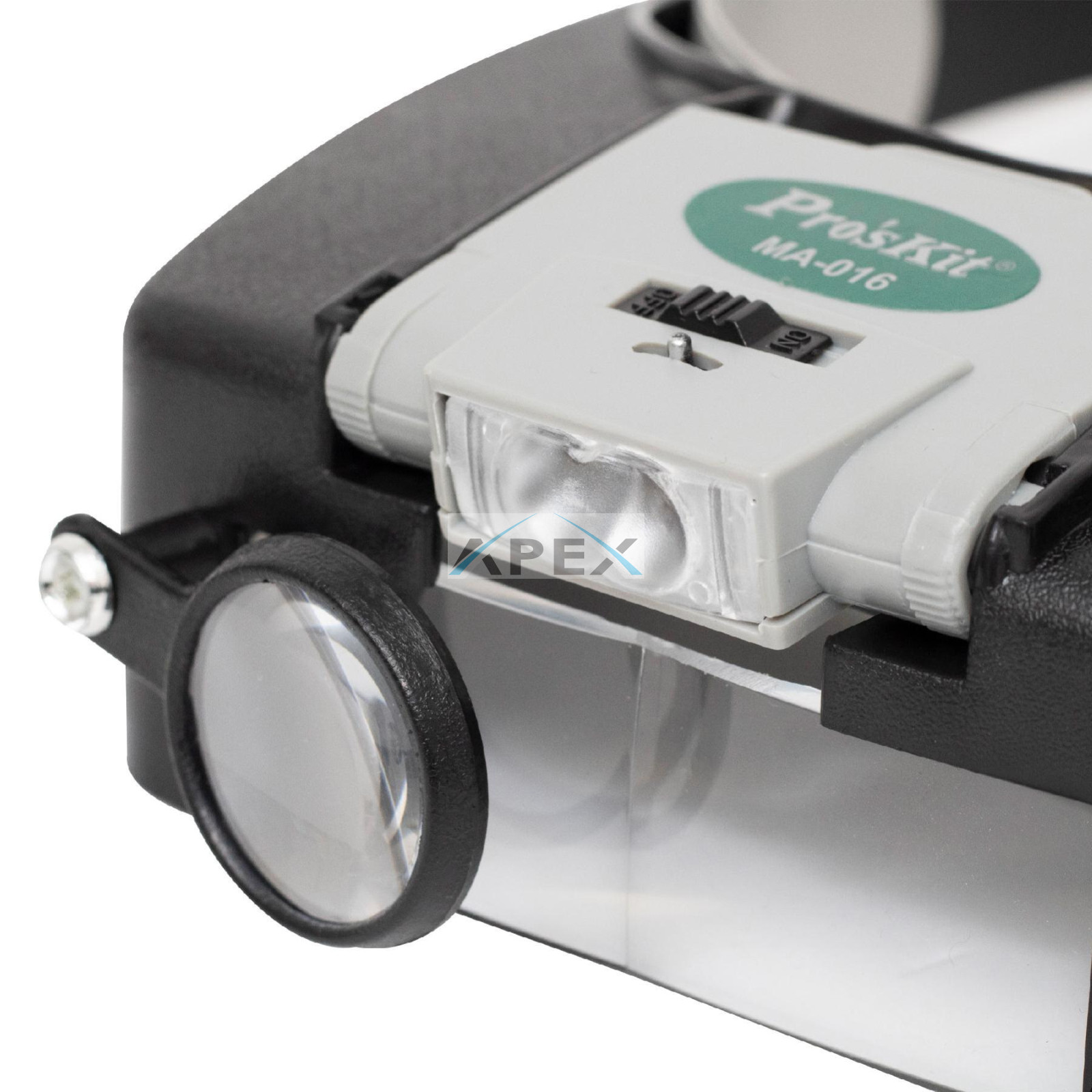 Pro'skit MA-016 világítós nagyító fejpánttal, alaplencse, lehajtható kettős lencse, elfordítható lencse, billenthető LED lámpa