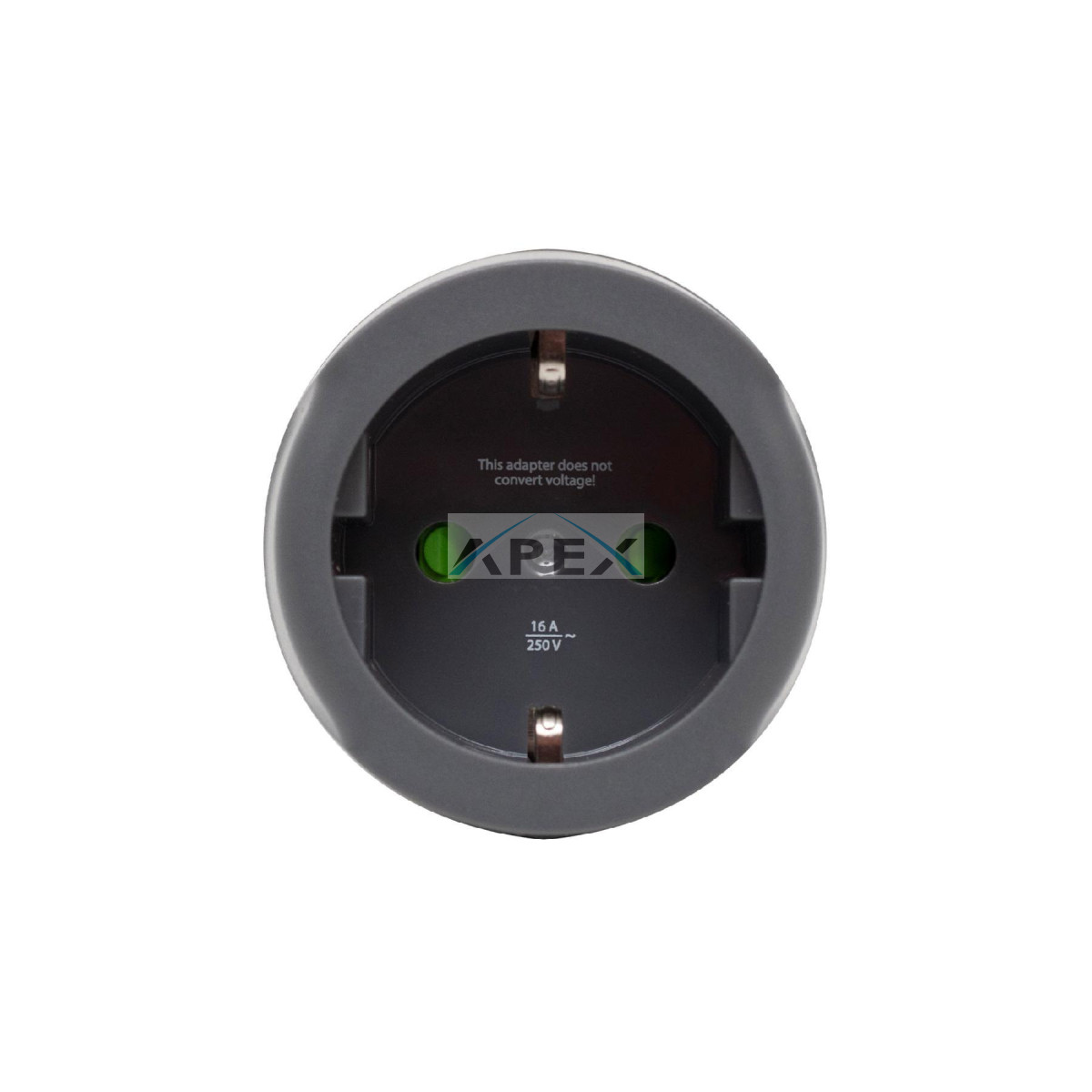 Ez az utazóadapter speciálisan tervezett azoknak, akik Európából az Egyesült Királyságba utaznak, és egy megbízható adapterre van szükségük. A \"Europe to UK"" funkcióval ellátott adapter lehetővé teszi a földelt GS csatlakozós készülékek használatát is. Az adapter kompatibilis az indulás országának GS szabványával, és a célország csatlakozójának UK szabványával. Bemeneti feszültsége 100-250 V, és akár 7 A maximális terhelést is képes kezelni. Teljesítménye 100 V esetén 700 W, míg 250 V esetén 1750 W.