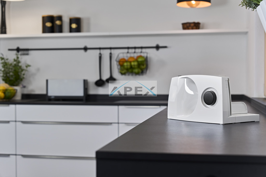 • Ez a szeletelő könnyen kezelhető, műanyagból készült, egyszerű és biztonságos üzemeltetést és megbízható funkcionalitást kínál.