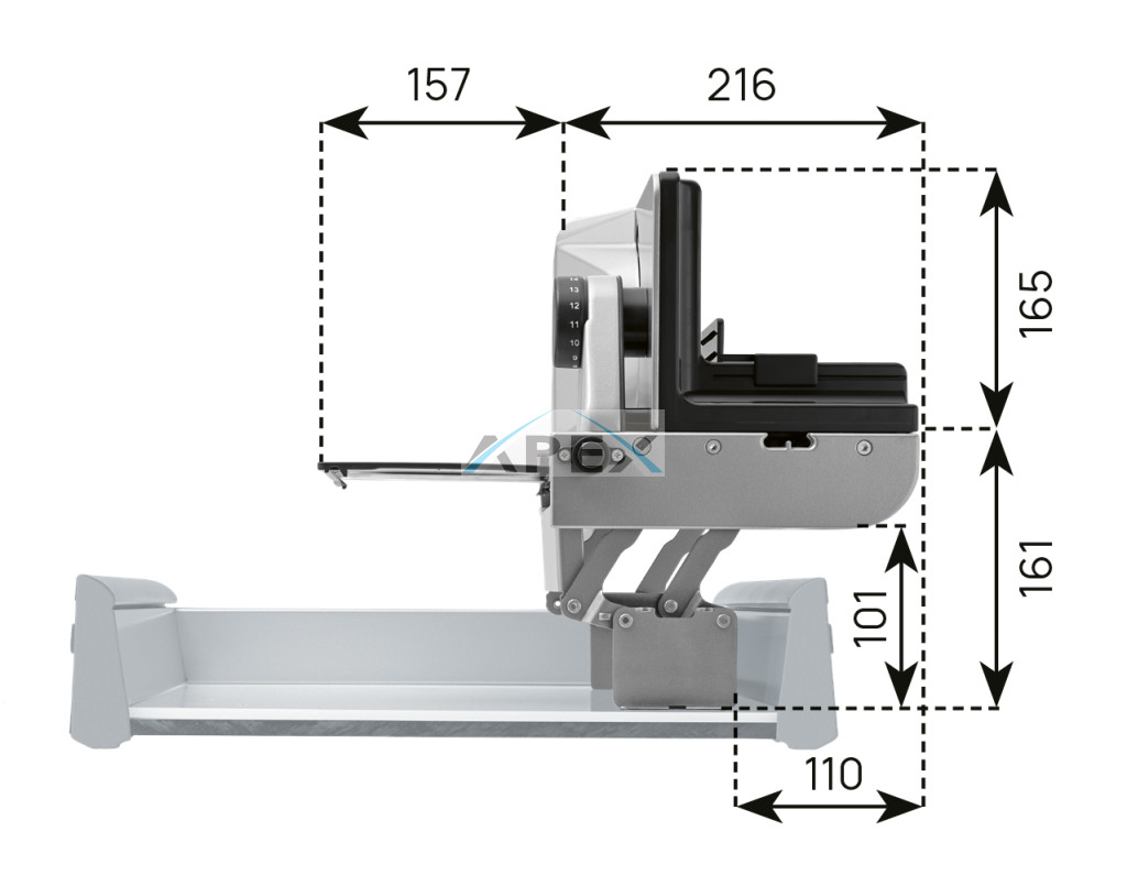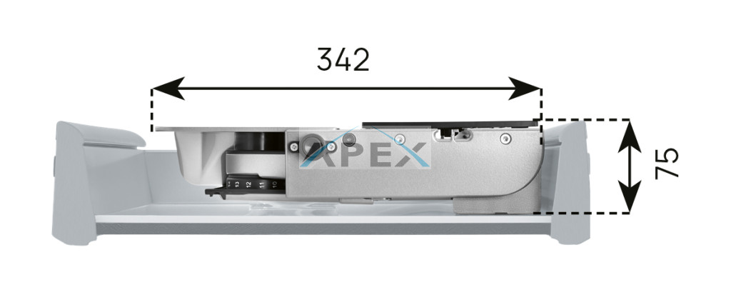 • Méretek: Magasság: 75 mm Szélesség: 342 mm Mélység 365 mm (összecsukva) Súly: 4,1 kg