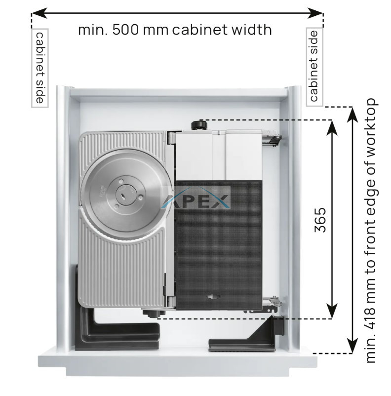 RITTER fiókba építhető szeletelő, magas zsanérhoz, jobb oldali vágófelület