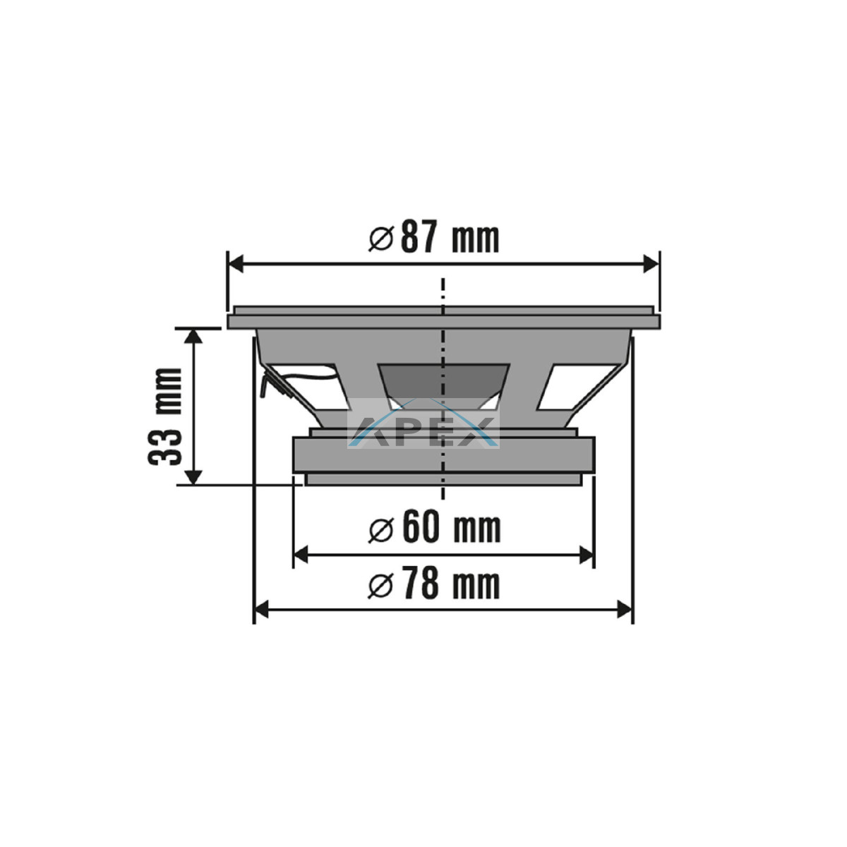 SAL BK 087 autóhangszóró pár, 87 mm, 2 x 35 Wmax, 75 - 18.500 Hz, 85 dB, PEI magas tölcsér, cellulóz mélyközép kónusz