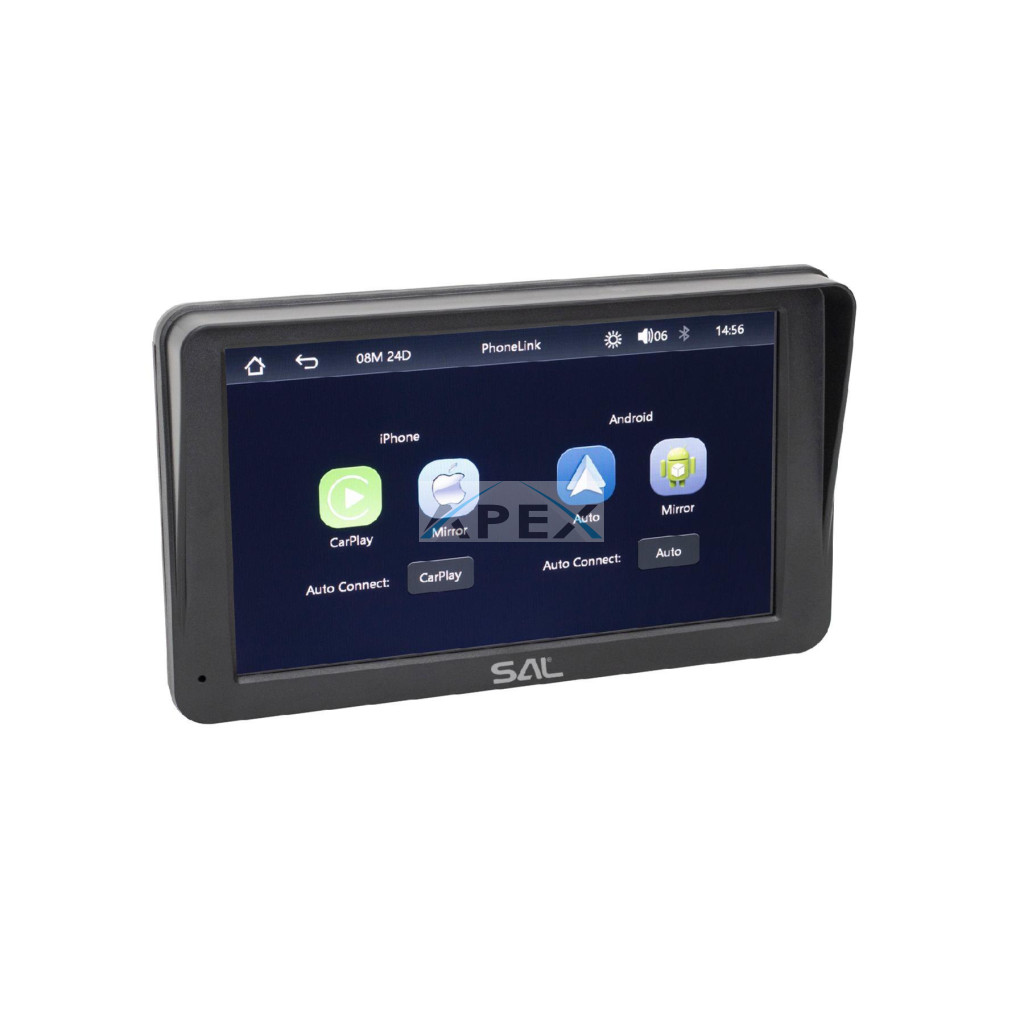A SAL CARPLAY7 egy távirányítóval, tapadókorongos teleszkópos tartóval, szivargyújtó tápkábellel dupla USB töltővel, valamint kamera adapterkábellel és sztereó audiokábellel érkezik. Használata egyszerű, egyetlen mozdulattal áthelyezhető másik járműbe, és 12V vagy 24V-os rendszerekhez egyaránt kompatibilis. Az éjszakai vezetéshez kikapcsolható képernyő funkció, a tolatókamera támogatás (SAL SA 143 külön vásárolható) pedig még nagyobb kényelmet és biztonságot nyújt.