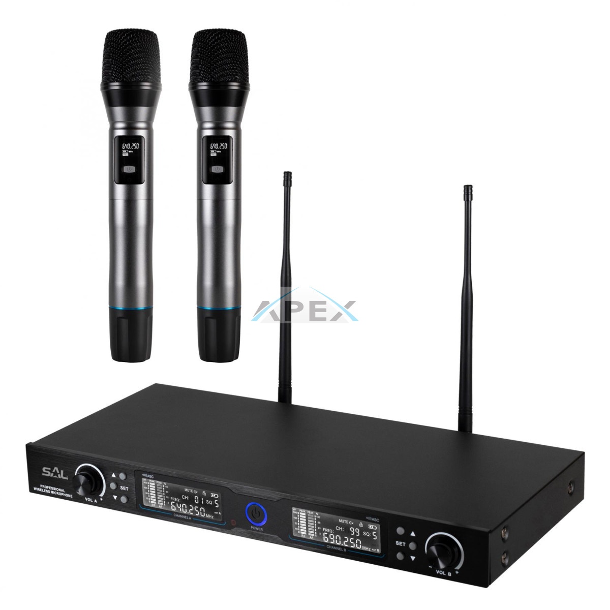 SAL MVN 910 vezeték nélküli mikrofonszett, digitális zajszűrés, 2x100 csatorna, ~140 m hatótáv, UHF frekvenciasáv, rack kompatibilis