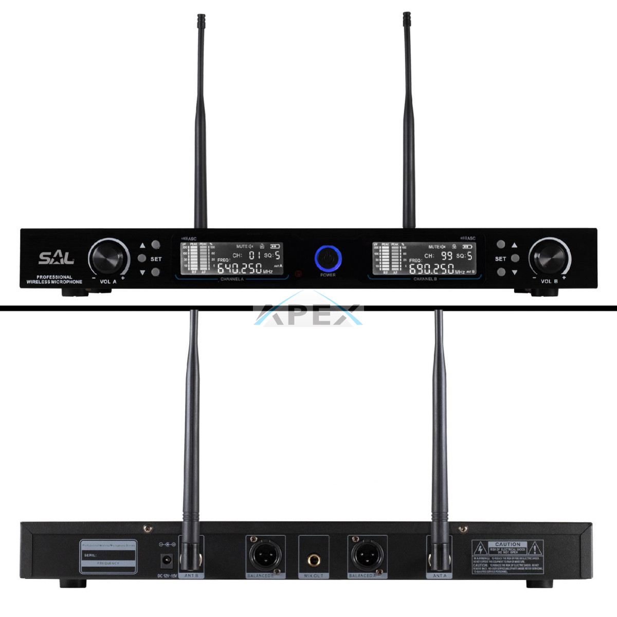 A vevőegység 2 darab szimmetrikus XLR audio kimenettel, valamint egy 6,3 mm-es összegzett audio kimenettel rendelkezik, így kompatibilis a legtöbb hangosító rendszerrel. A nagynyereségű BNC antennák erős és megbízható rádiójelet biztosítanak, amely nyílt terepen akár 140 méter távolságig is működőképes. A rendszer maximális kimeneti teljesítménye <10 mW, amely hatékony működést garantál alacsony energiafelhasználás mellett.