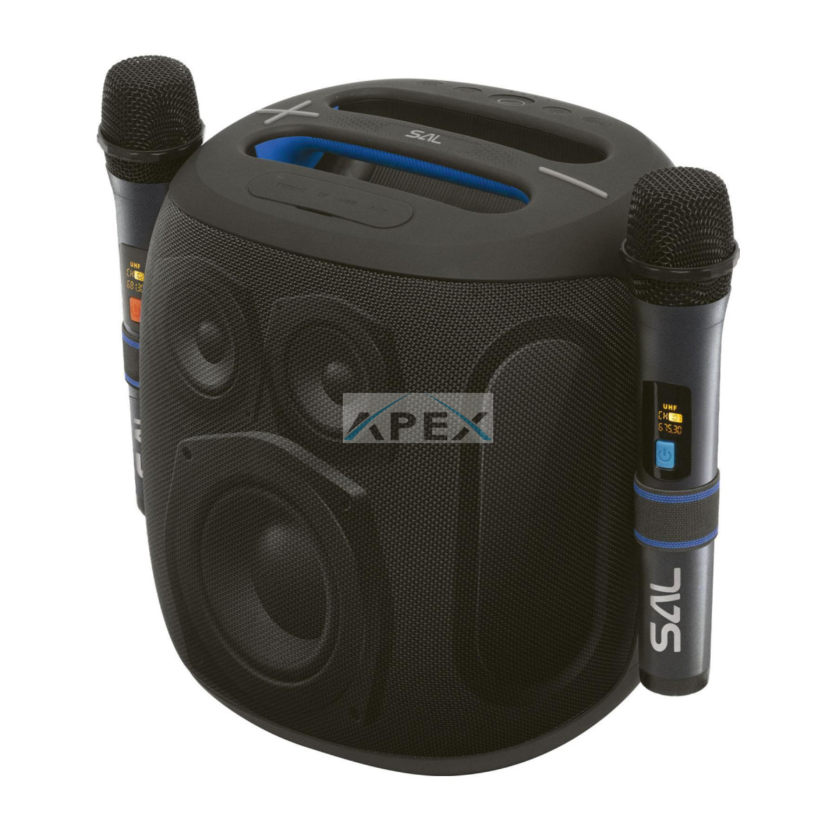 SAL PARCUBE boombox, 100 W, 2db vezeték nélküli mikrofon, 5db hangszóró, LED fényeffekt, IPX5 védelem, Bluetooth