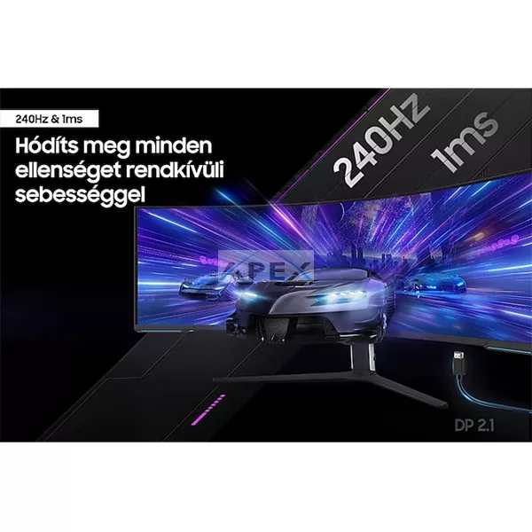 SAMSUNG Ívelt Gaming 240Hz VA monitor 57" G95NC, 7680x2160, 32:9, 420cd/m2, 1ms, 3xHDMI/DP/2xUSB