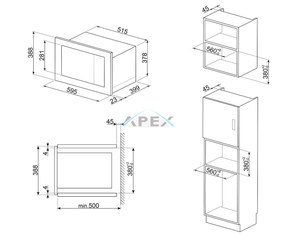 SMEG BEÉPÍTHETŐ MIKROHULLÁMÚ SÜTŐ, Universal design, 25 liter, érintőszenzor, fekete üveg