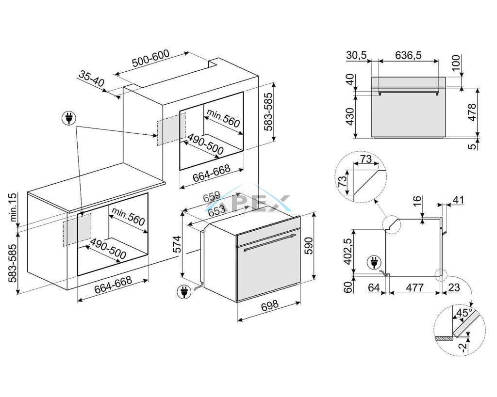 SMEG HŐLÉGKEVERÉSES SÜTŐ, Classica design, 70 cm, ES LCD, inox