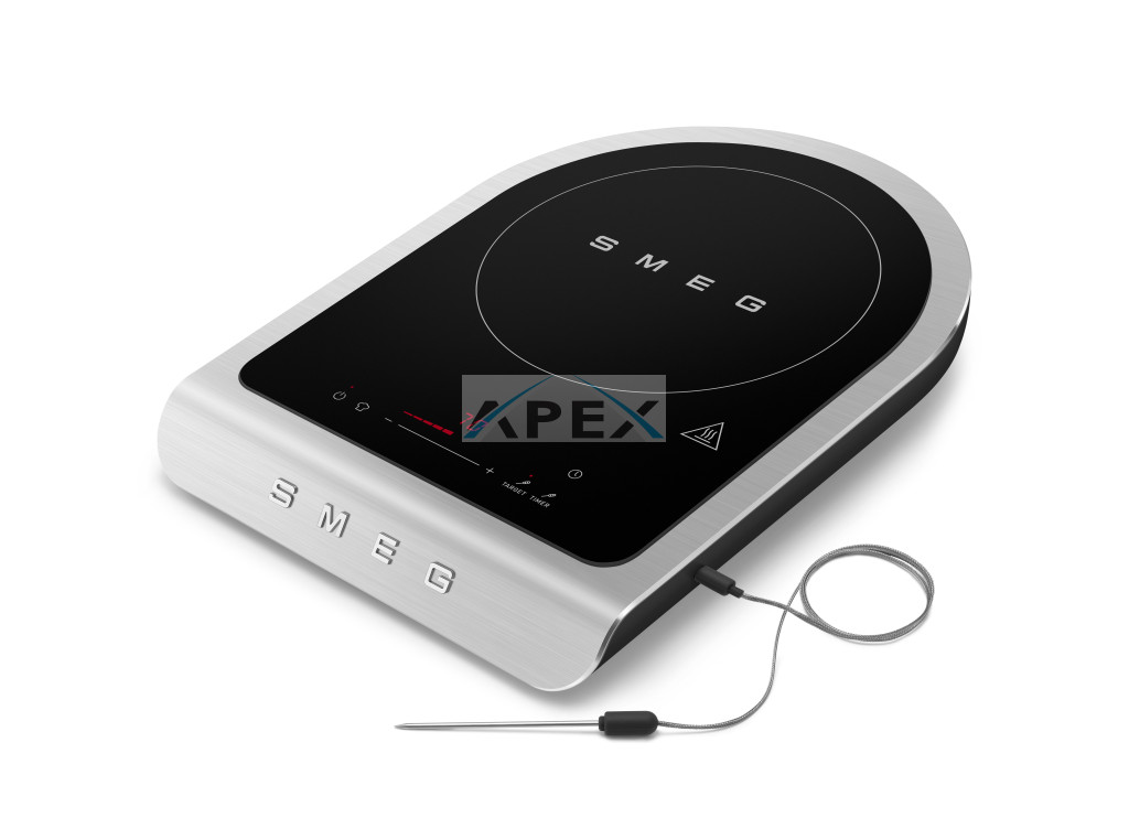 SMEG HORDOZHATÓ INDUKCIÓS FŐZŐLAP, Collezione design, hőmérő szondával, matt fekete