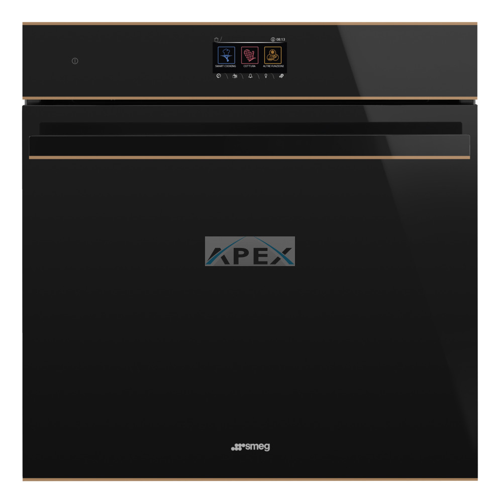 SMEG KOMBINÁLT GŐZPÁROLÓ-SÜTŐ, Dolce Stil Novo design, 60 cm széles, 20+1 funkció, 150 automatikus program, színes TFT kijelző, fekete üveg, réz díszítés
