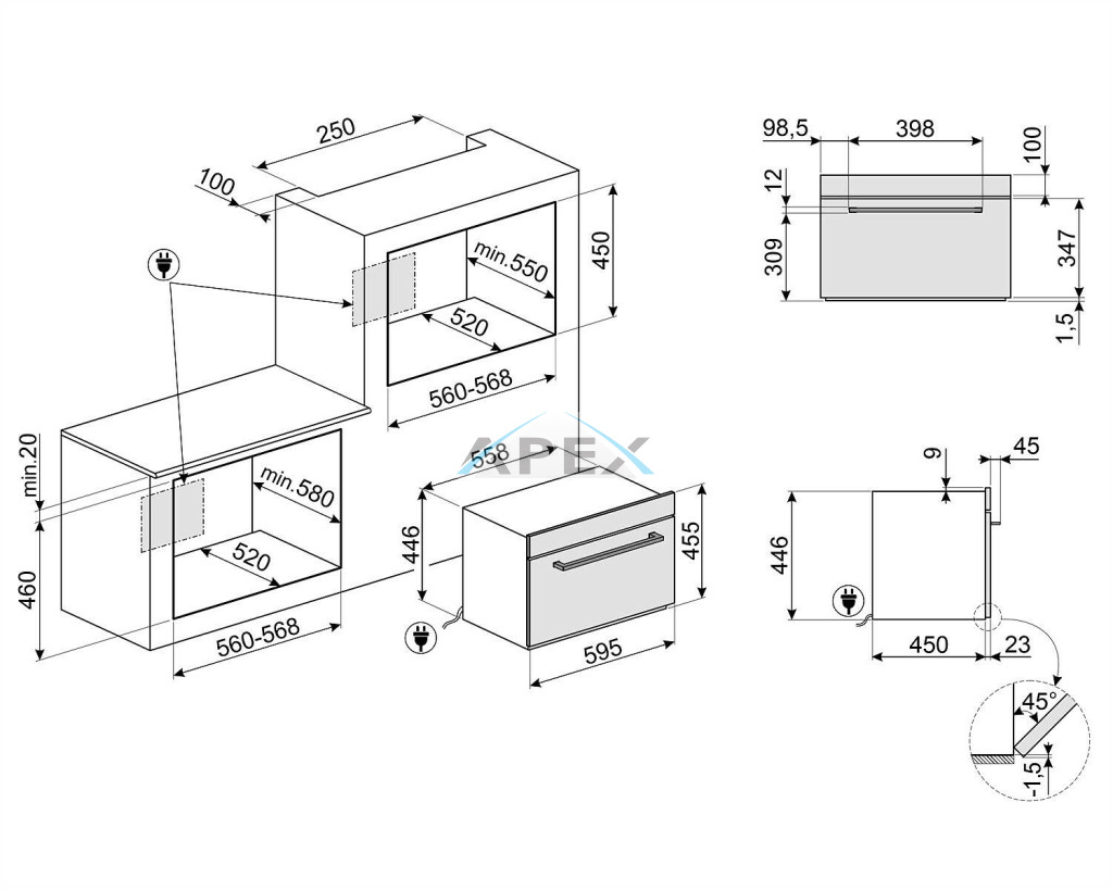 SMEG KOMPAKT KOMBINÁLT MIKROHULLÁMÚ SÜTŐ, Selezione design, 45 cm, rozsdamentes acél