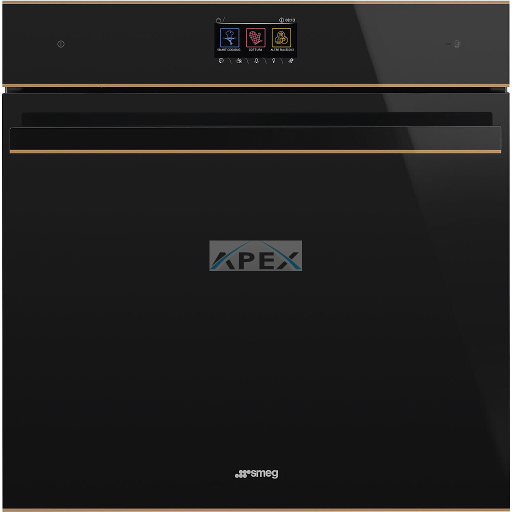 SMEG KOMBINÁLT MIKROHULLÁMÚ SÜTŐ, Dolce Stil Novo design, Galileo, 60 cm, TFT, fekete üveg, réz dísz