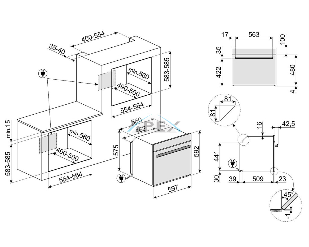 teleszkópos sütősín (teljesen kihúzható),többpontos maghőmérő,üveg tepsi,rács (1 db),prémium inox sütőrács (1 db),1 db zománcozott mély tepsi (50 mm)