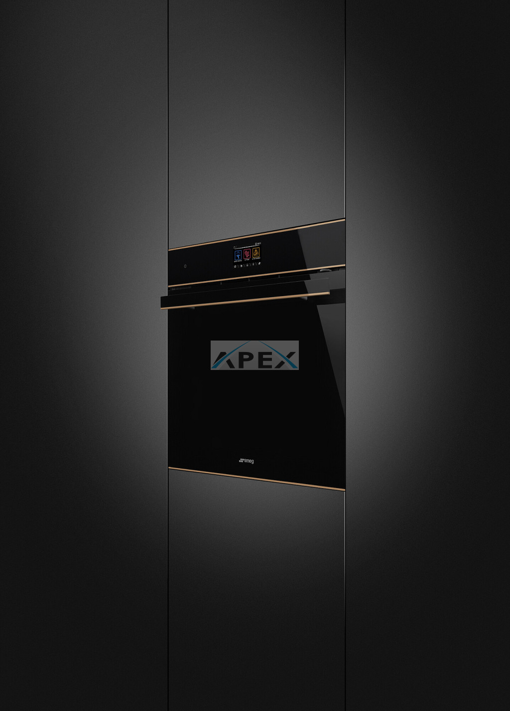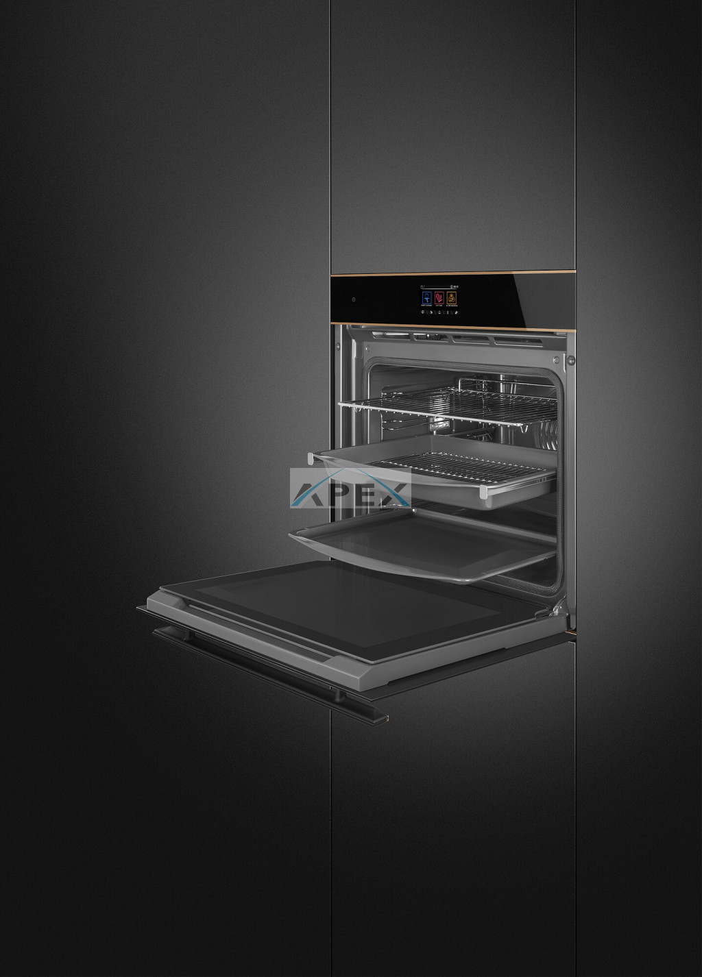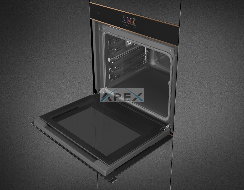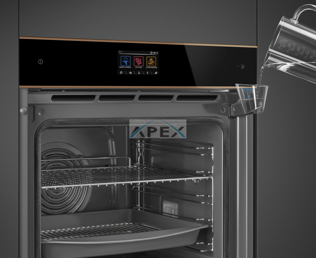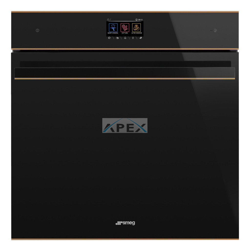 SMEG KOMBINÁLT PIROLITIKUS SÜTŐ, GŐZFUNKCIÓVAL, Dolce Stil Novo design, 60 cm, Galileo platform, SteamOne, VivoScreen TFT kijelző, fekete üveg, réz díszítés